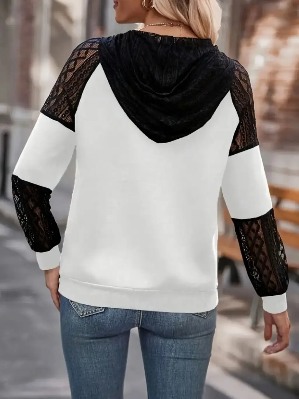Kadın Uzun Kollu Dantelli Kapşonlu Viskon Iki Iplik Bluz
