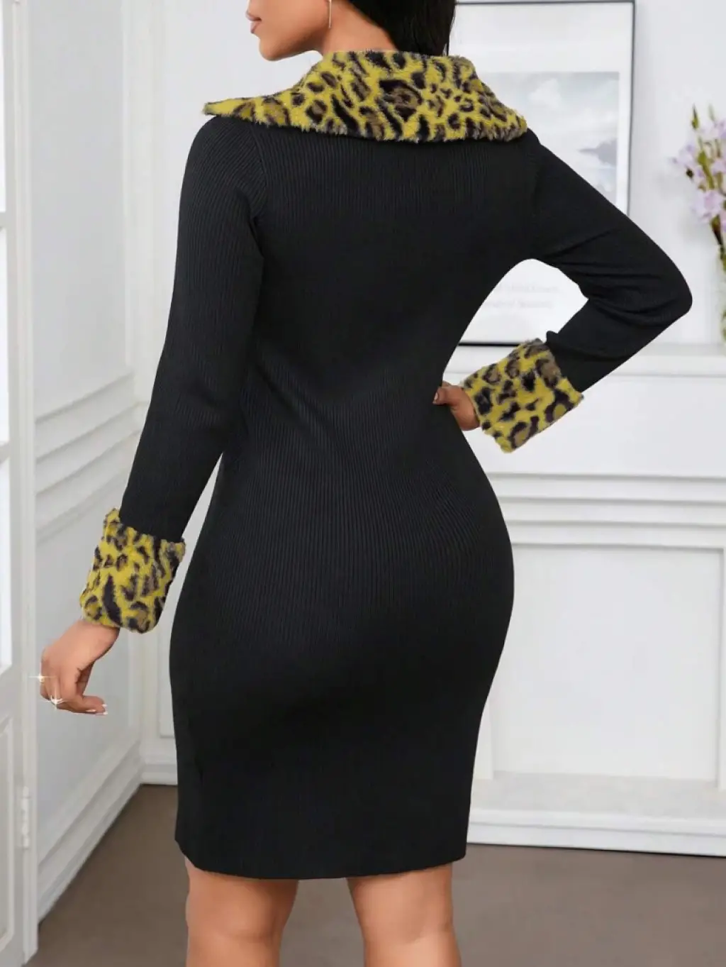 Kadın Uzun Kollu V Yakalı Kürk Detaylı Kaşkorse Elbise