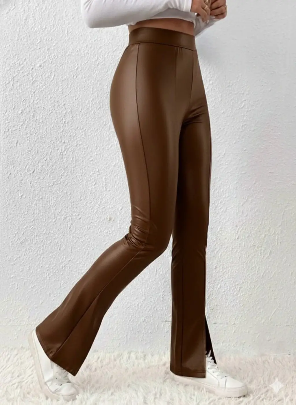 Kadın Yüksek Bel önden Yırtmaçlı Deri Tayt