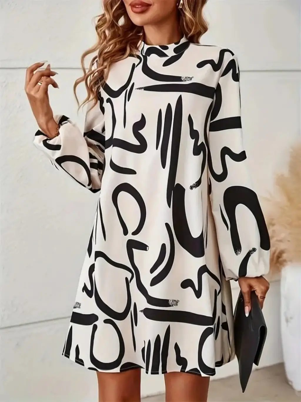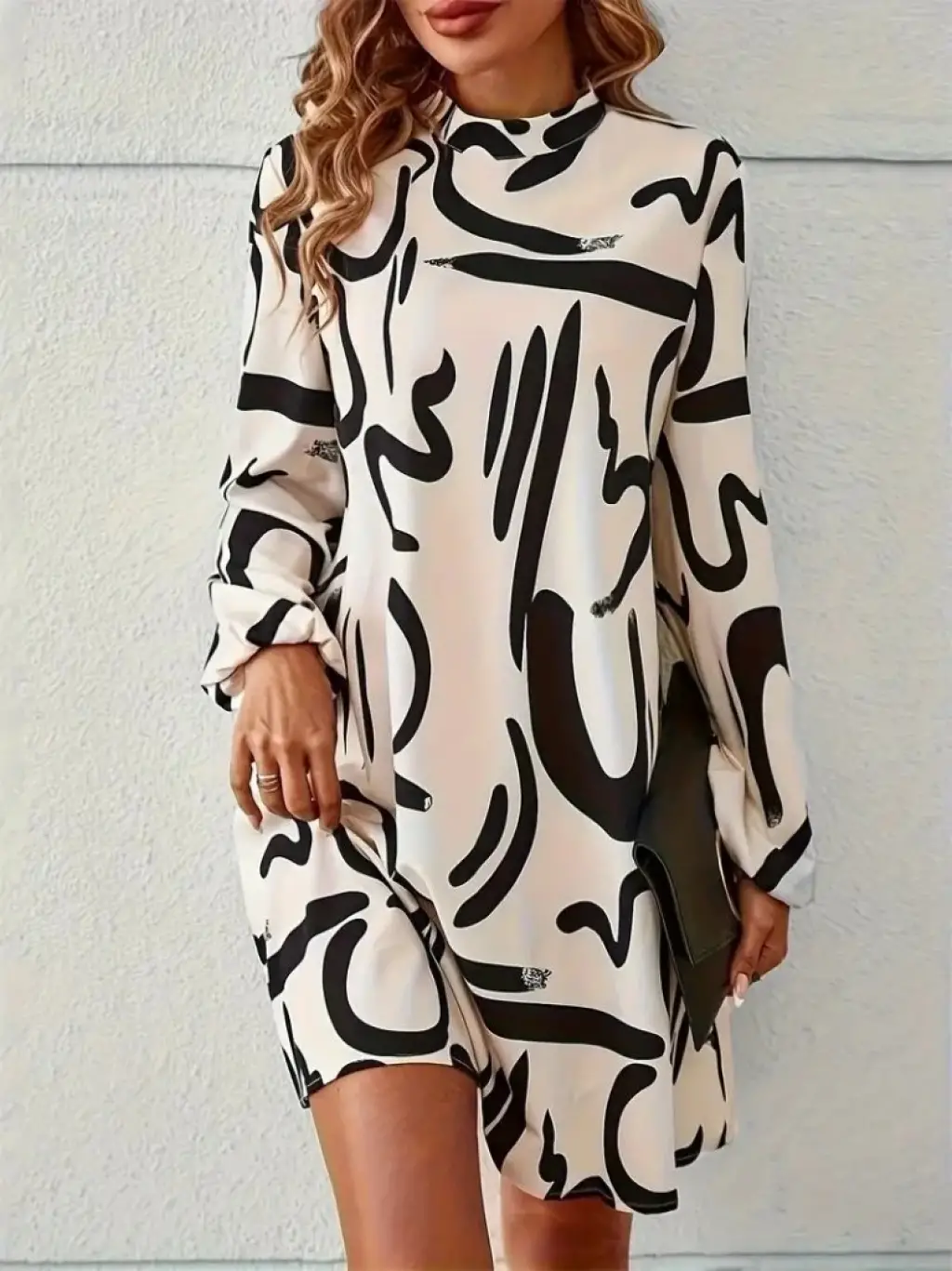 Kadın Uzun Kollu Bisiklet Yaka Yazılı Viskon Iki Iplik Elbise