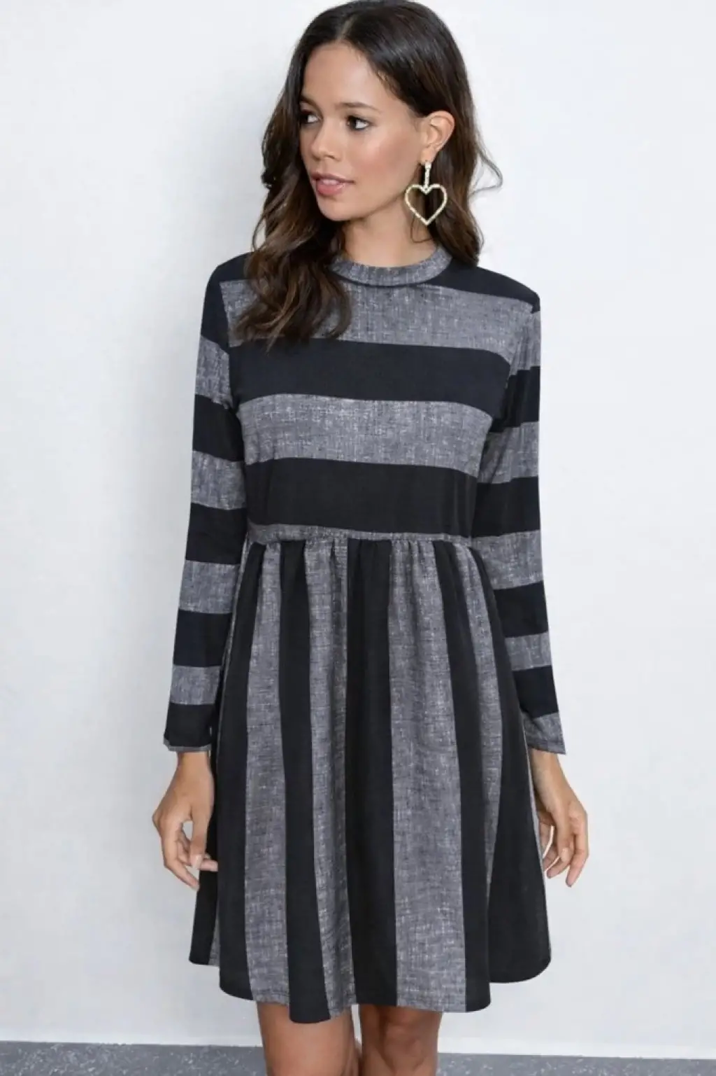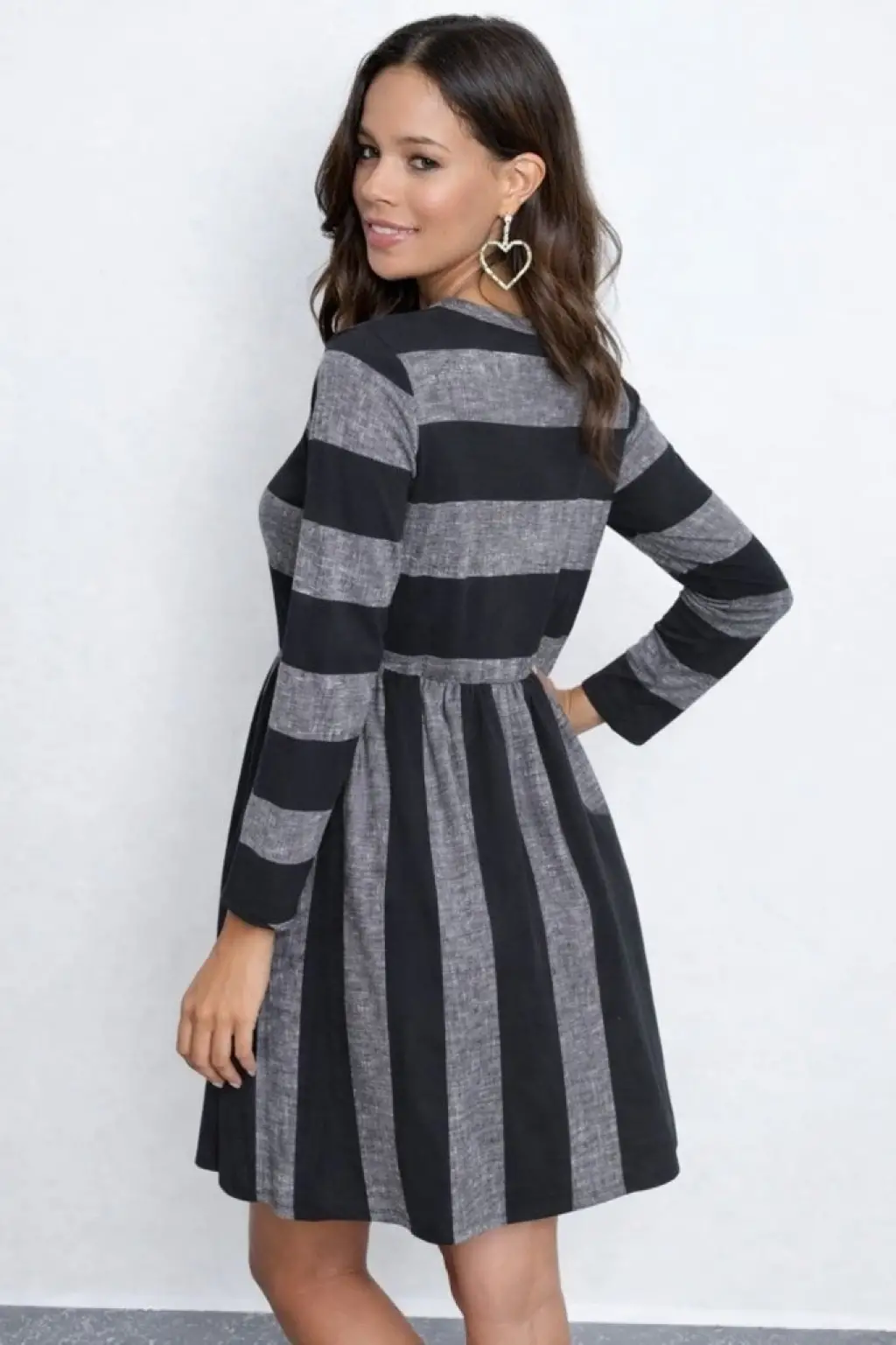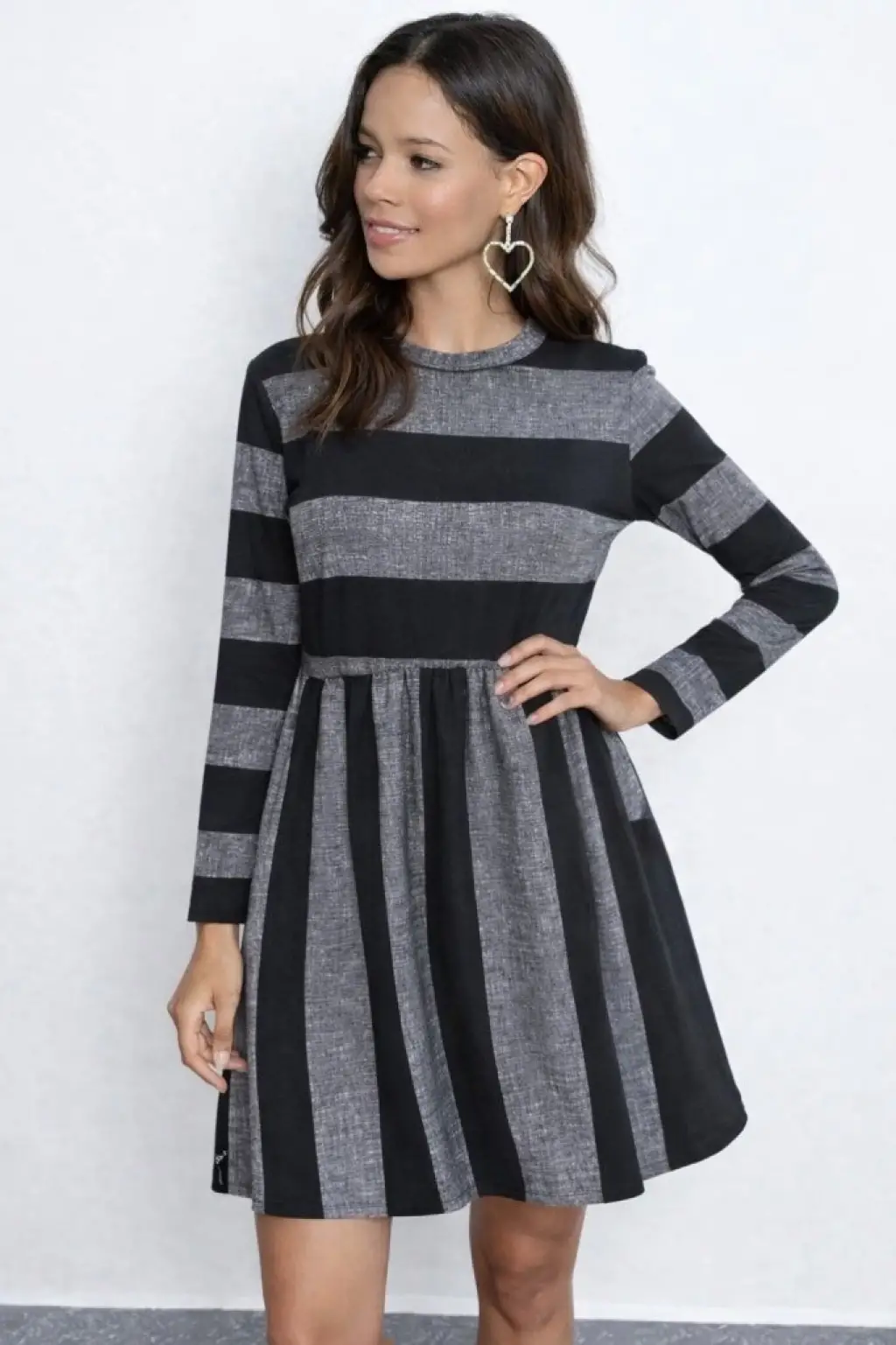 Kadın Uzun Kollu Bisiklet Yaka çizgili Desen Detaylı Süprem Mini Elbise