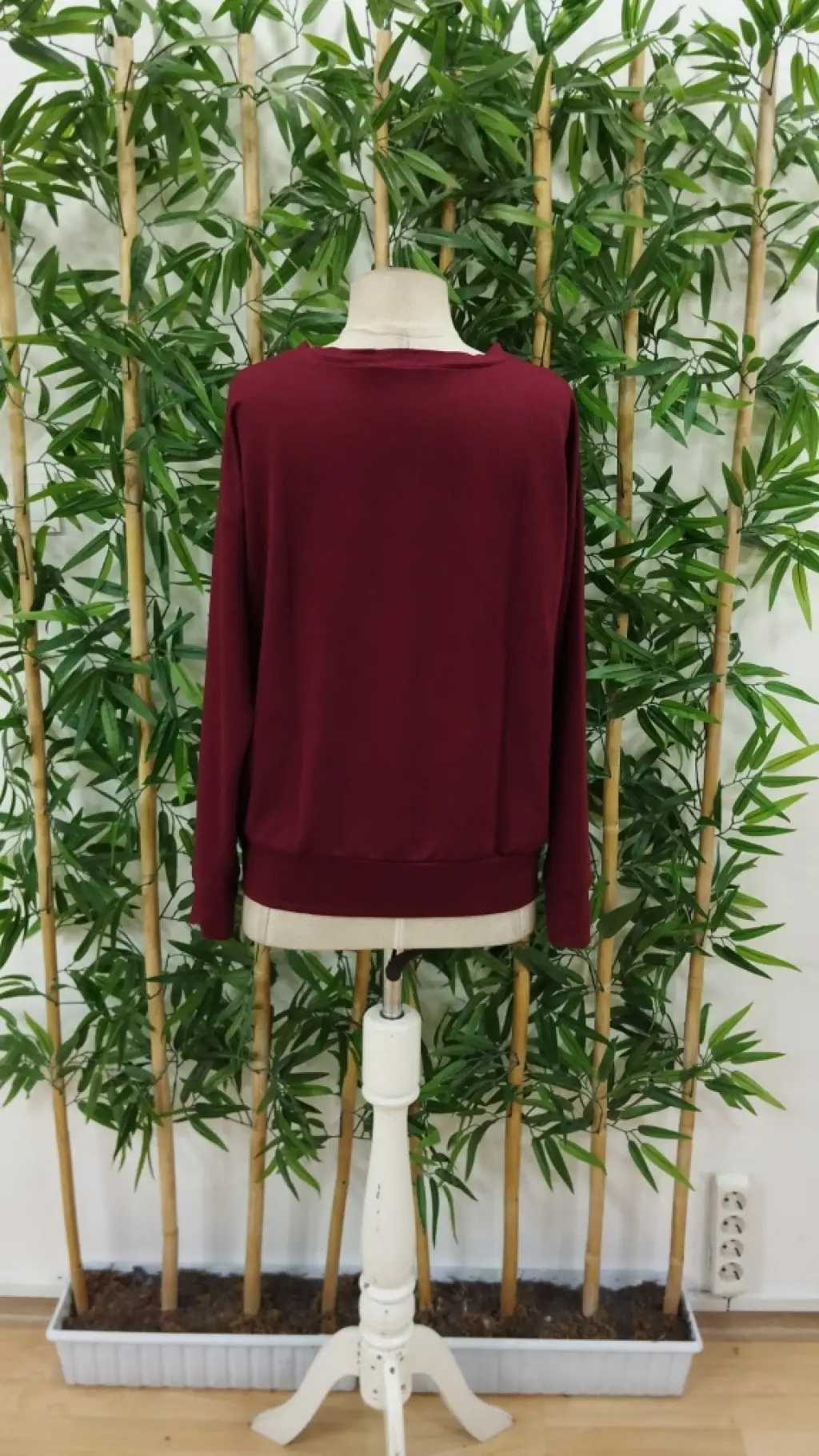 Kadın Uzun Kollu Bisiklet Yaka Baskılı Iki Iplik Bluz