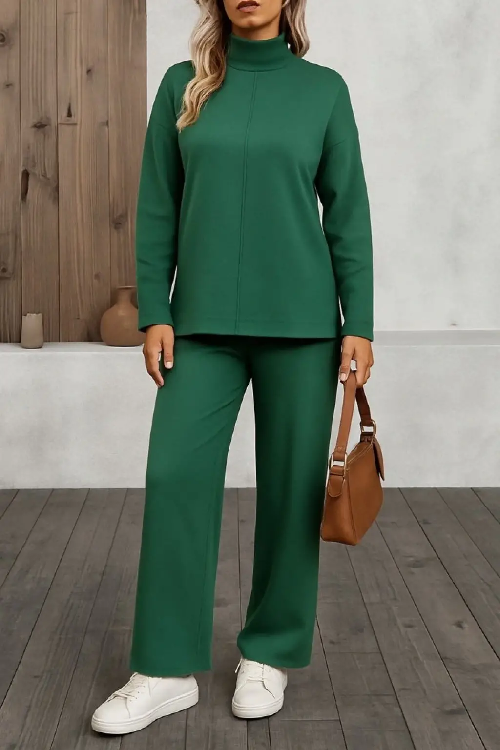 Kadın Uzun Kollu Balıkçı Yaka şardonlu Bluz Ve Pantolon Ikili Takım