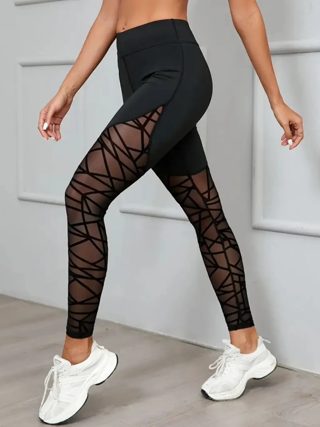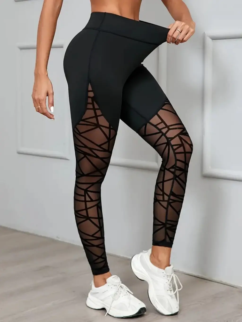 Kadın Yüksek Bel Geometrik Desen File Detaylı Dalgıç Tayt