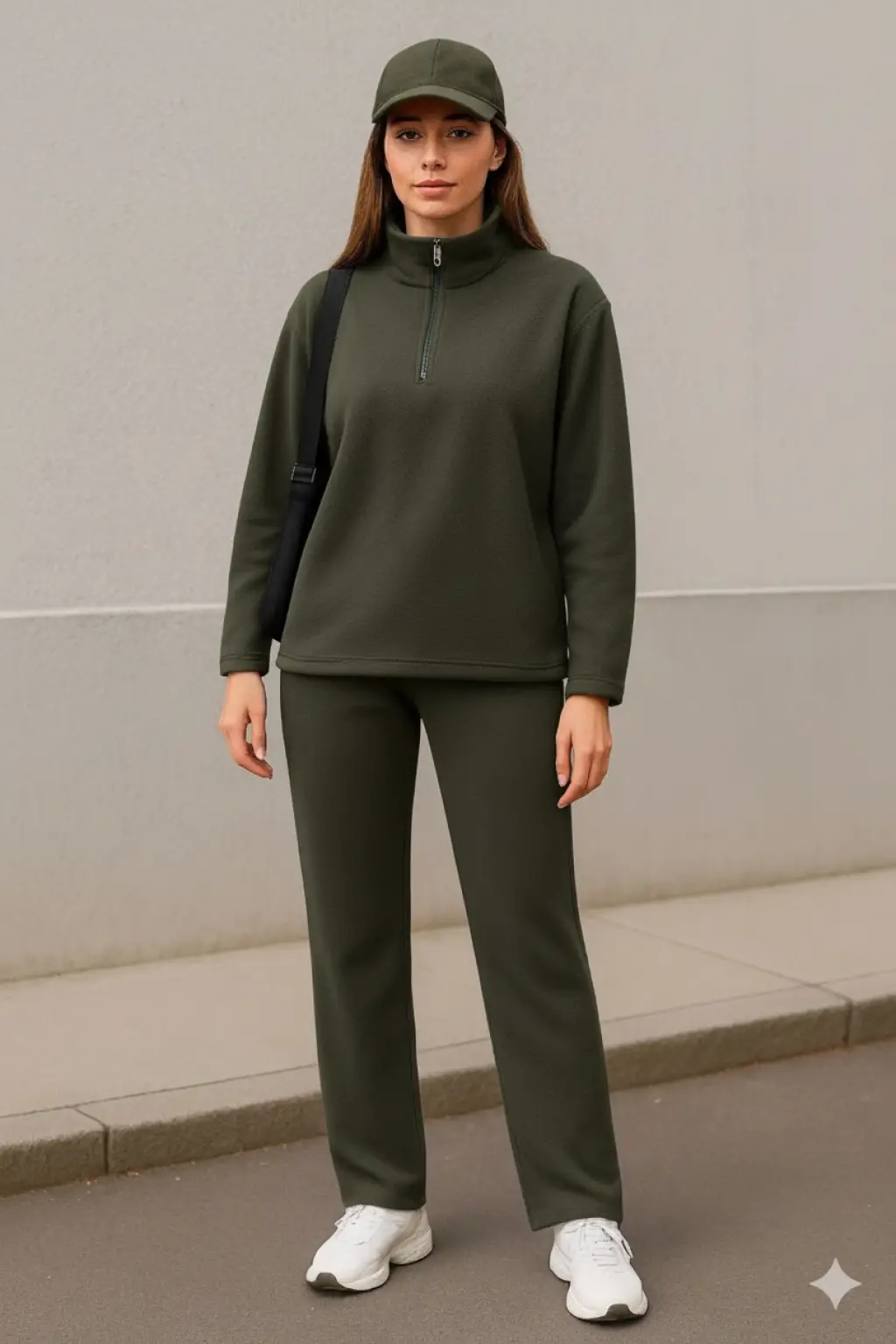 Kadın Balıkçı Yaka Fermuar Detay Polar Sweat Ve Pantolon Ikili Takım