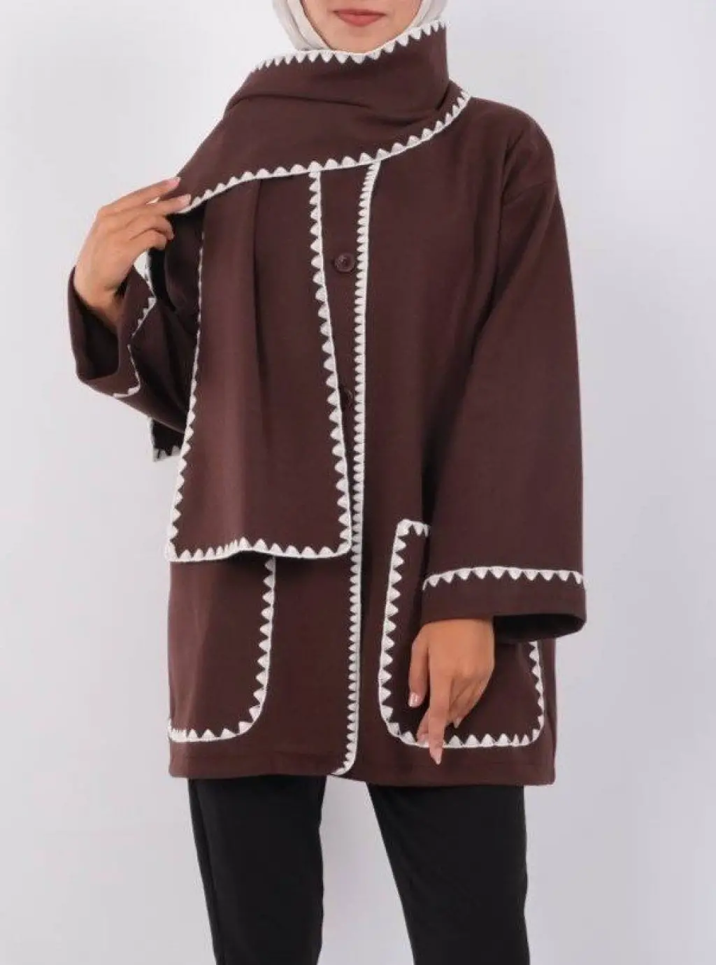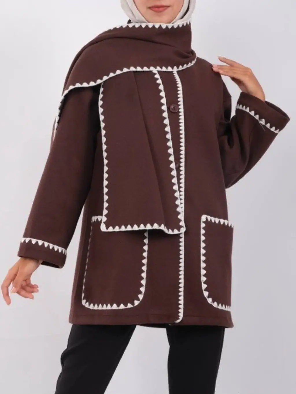 Önü Düğmeli Atkılı Cepli Ceket -Kahve