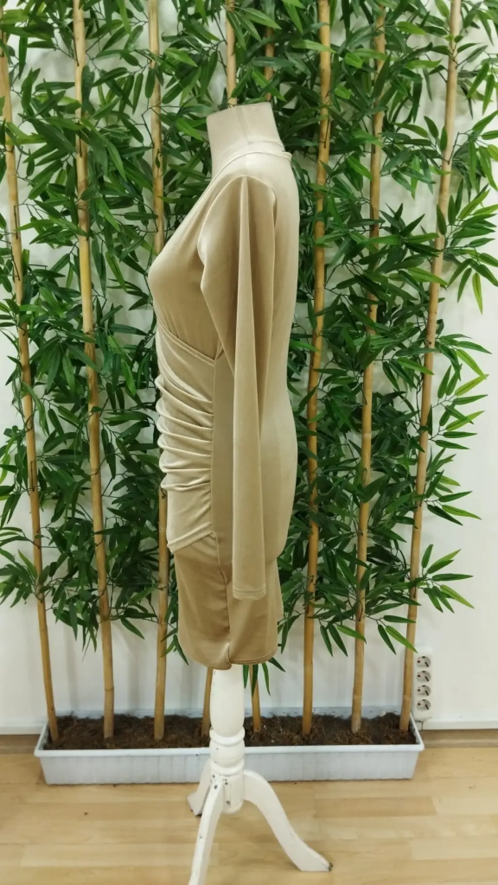 Kadın Uzun Kollu Kruvaze Yaka Kısa Kadife Elbise