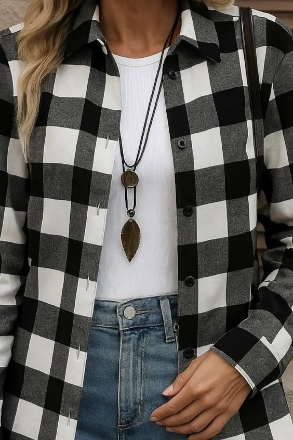 Kadın Uzun Kollu Kare Desenli önden Düğmeli Dokuma Gömlek