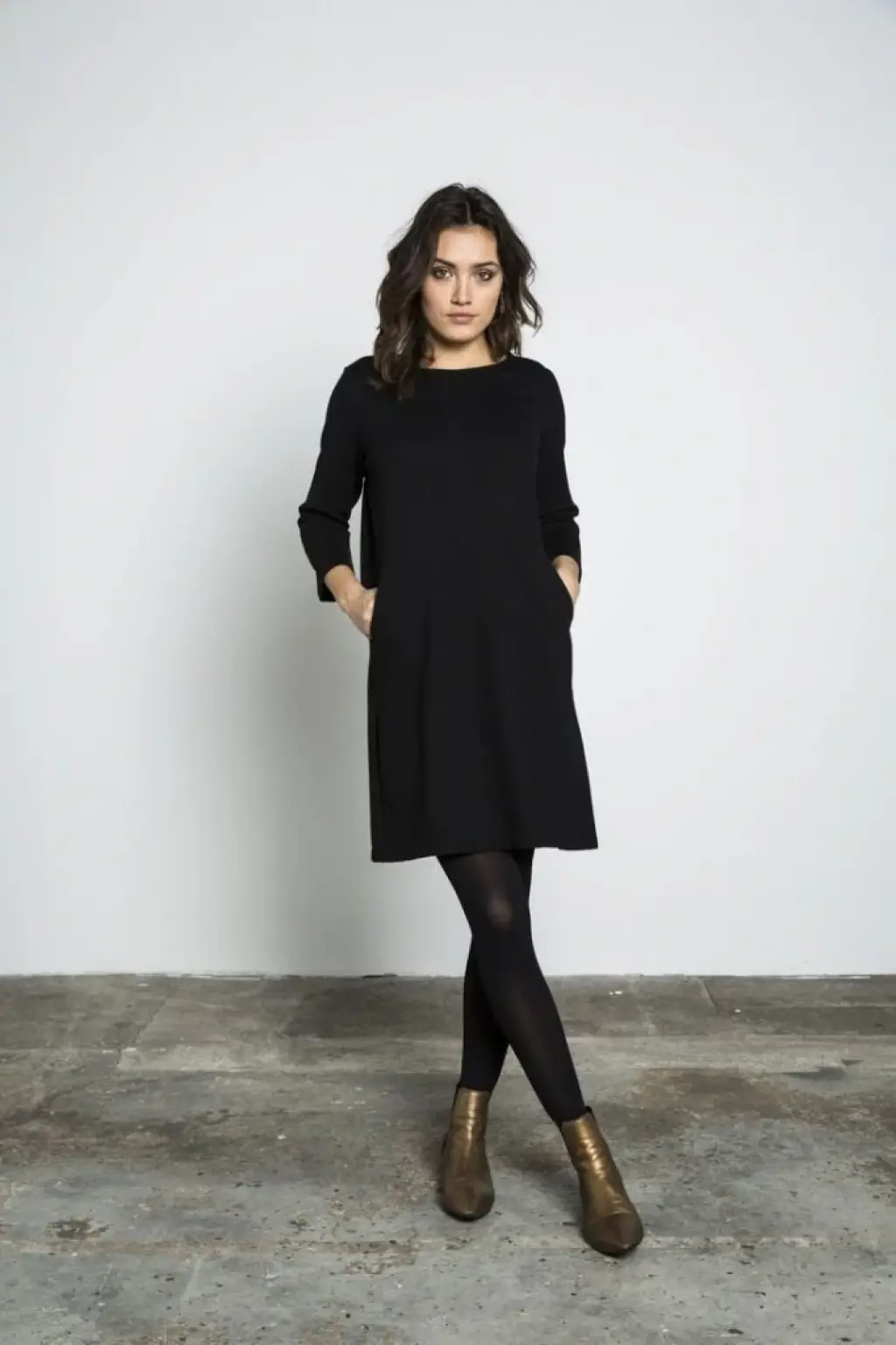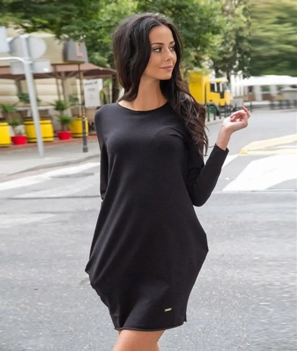 Kadın Uzun Kollu Geniş Yaka Yırtmaç Detay Mini Boy Triko Elbise