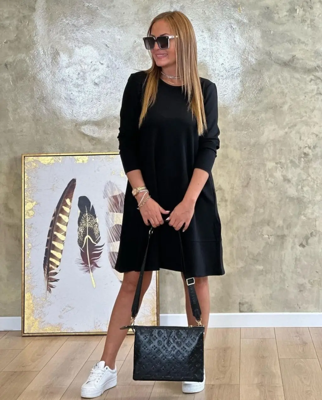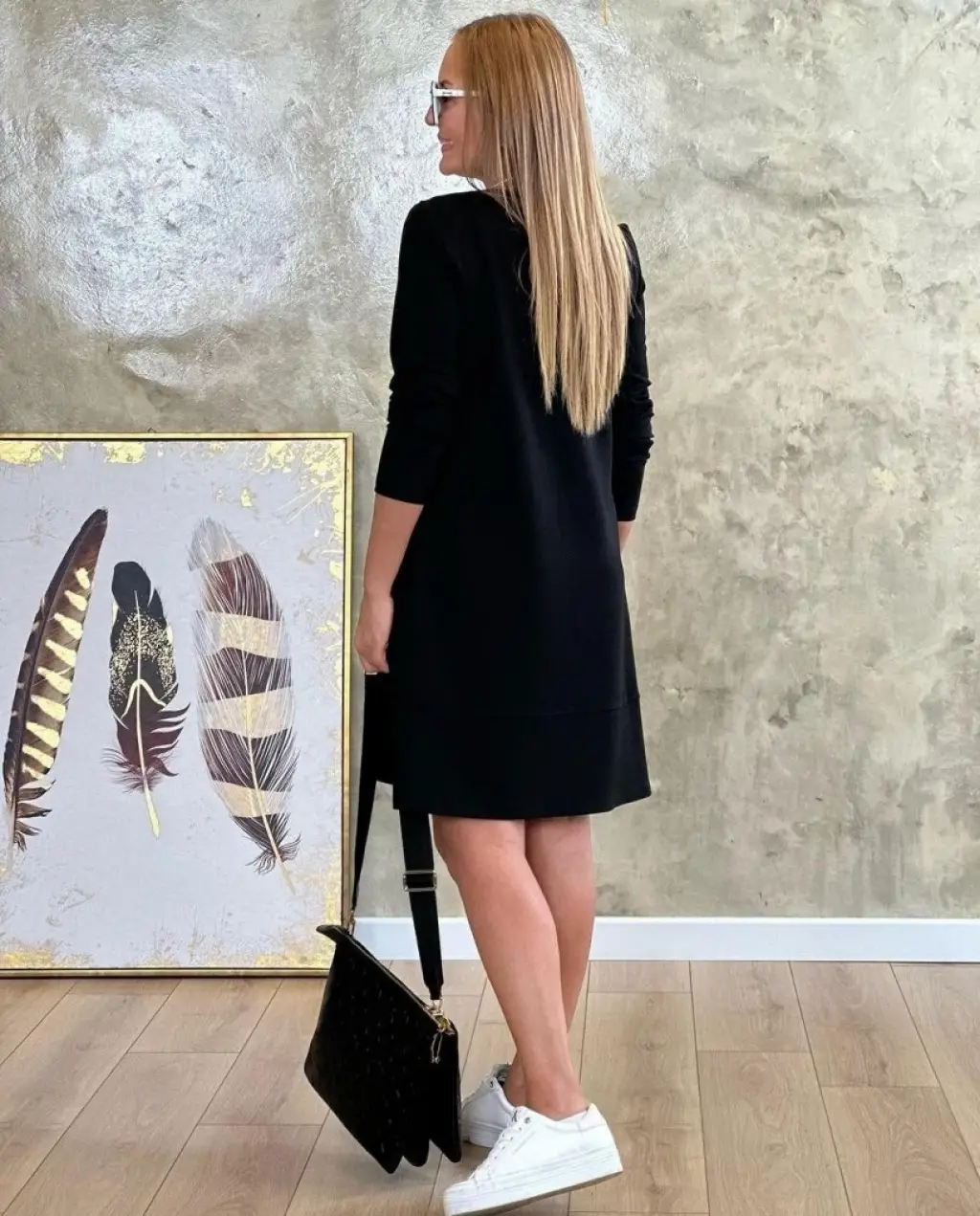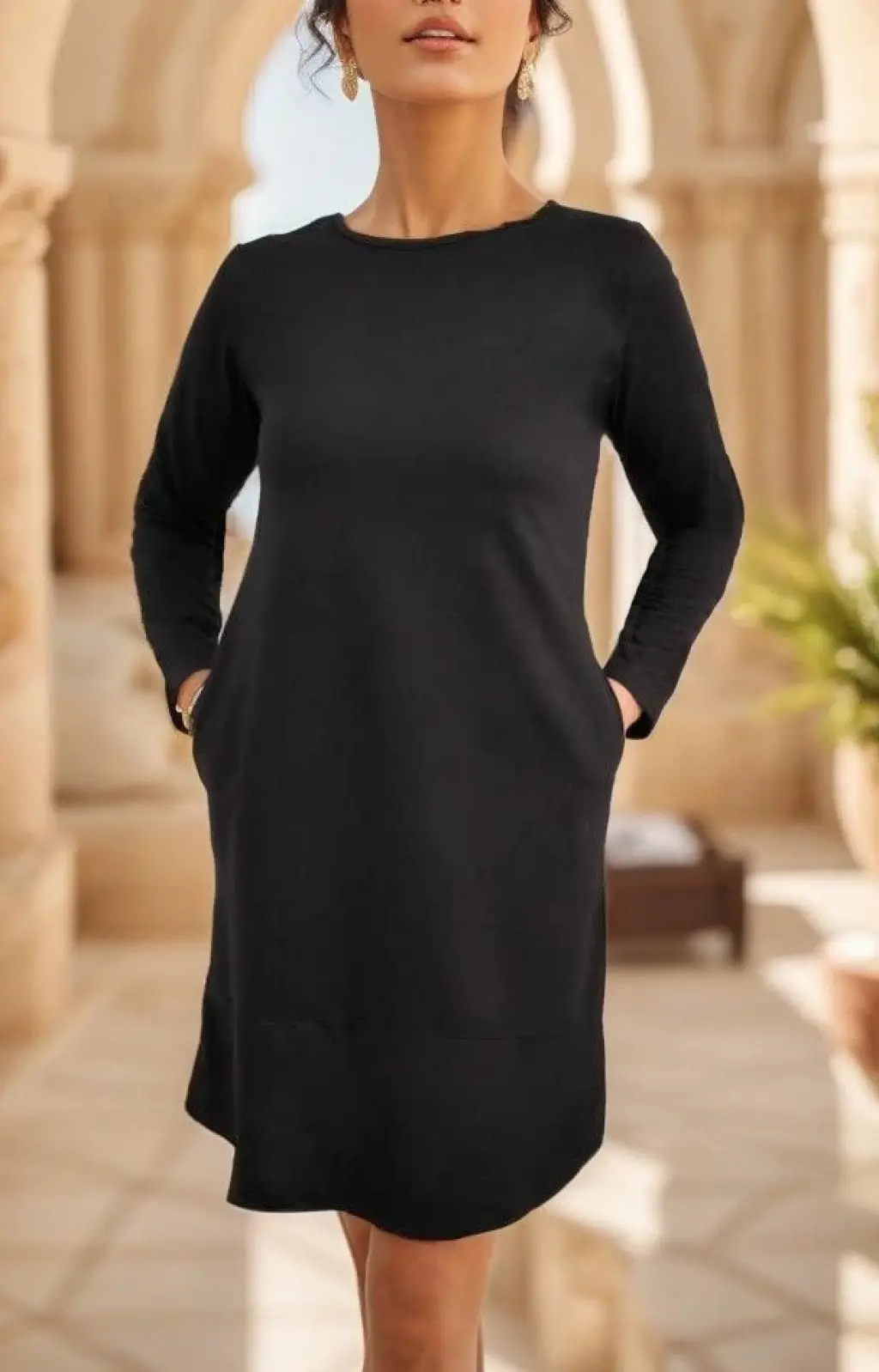 Kadın Uzun Kollu Bisiklet Yaka Cep Detay Etek Ucu Volanlı Iki Iplik Elbise
