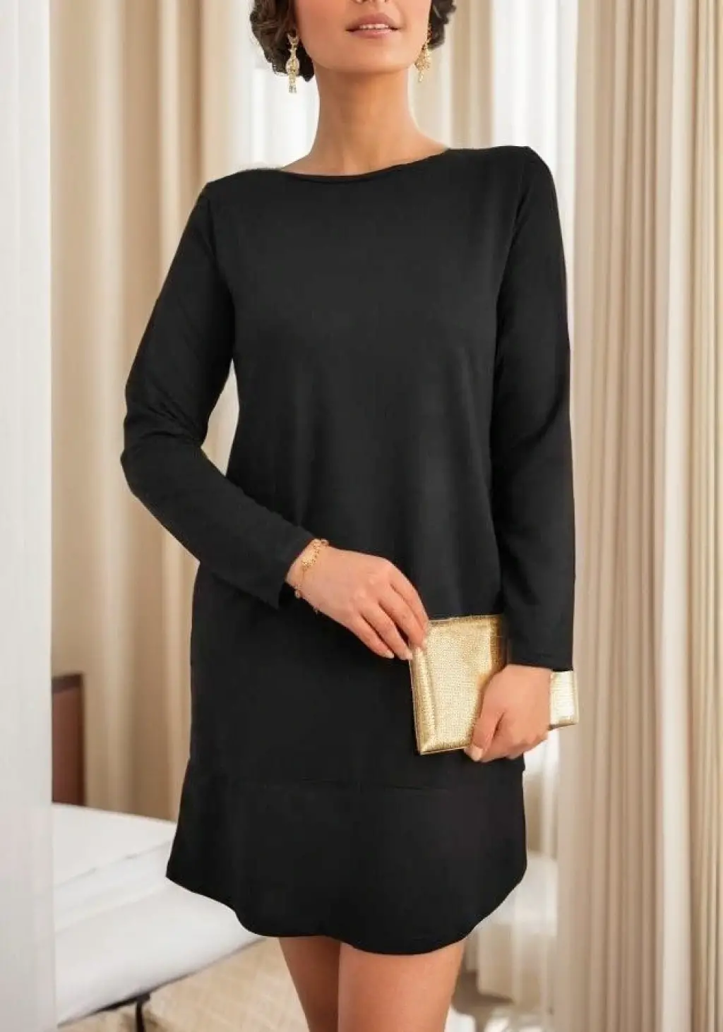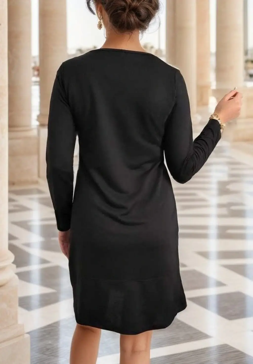 Kadın Uzun Kollu Kruvaze Yakalı Mini Sandy Elbise