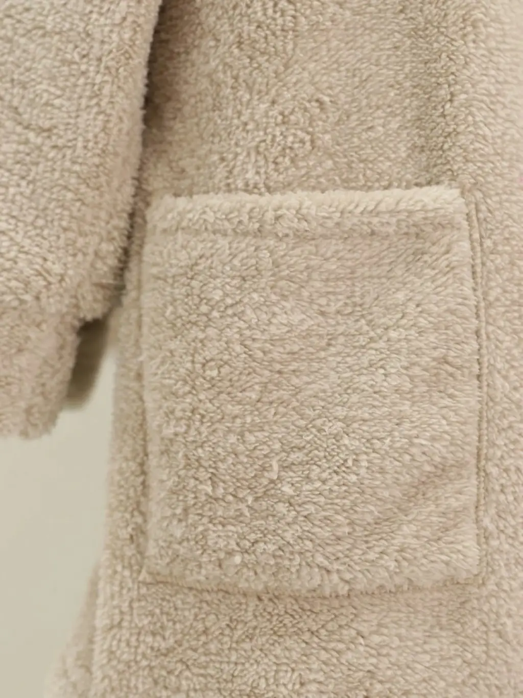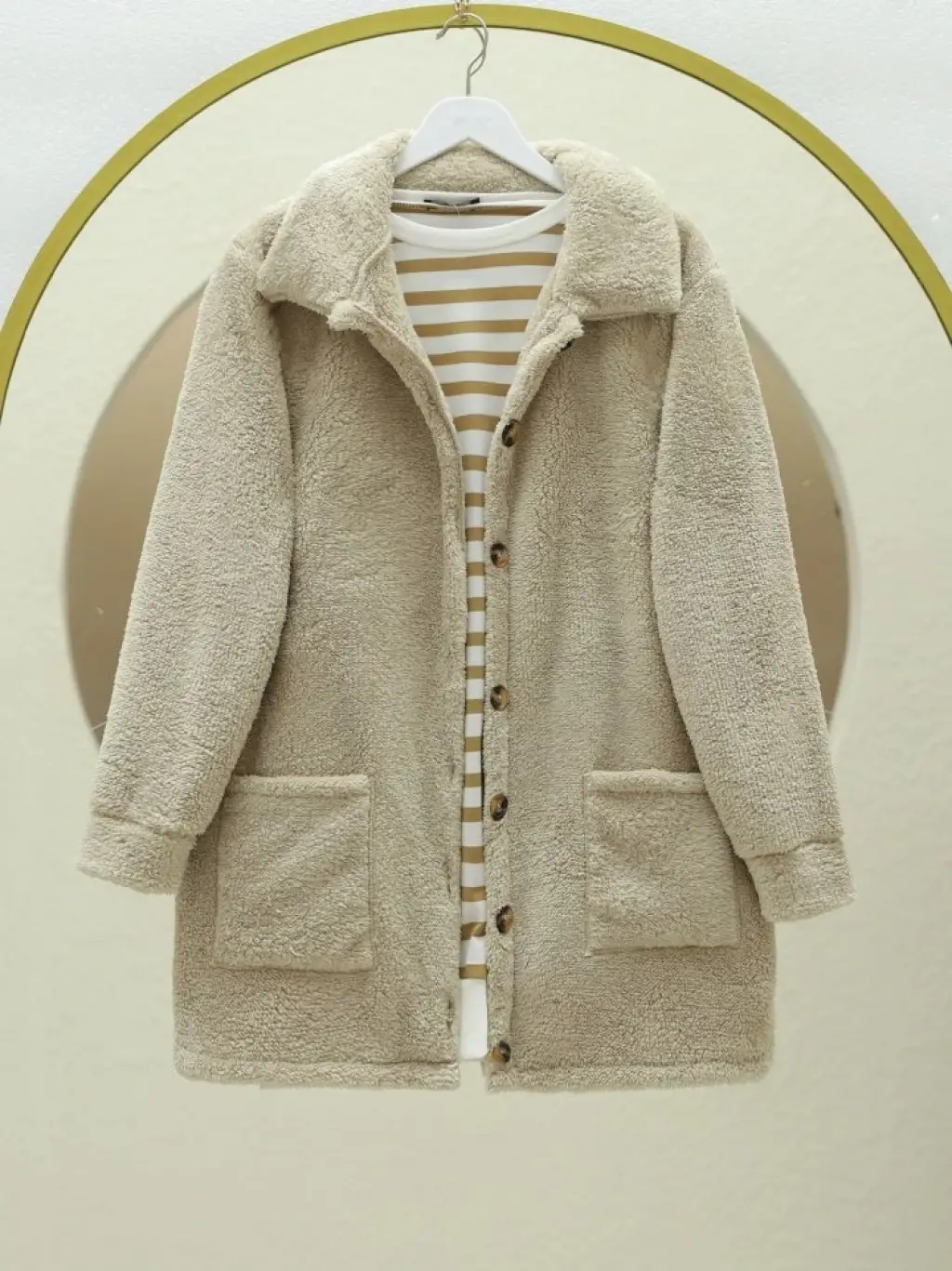 Boydan Düğmeli Cepli Pelüş Ceket -Açık Vizon