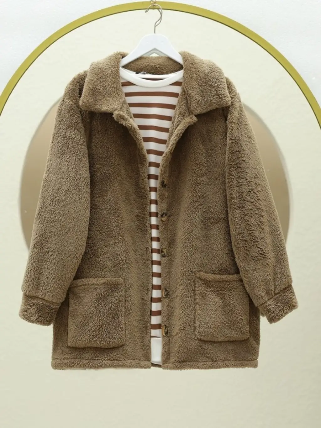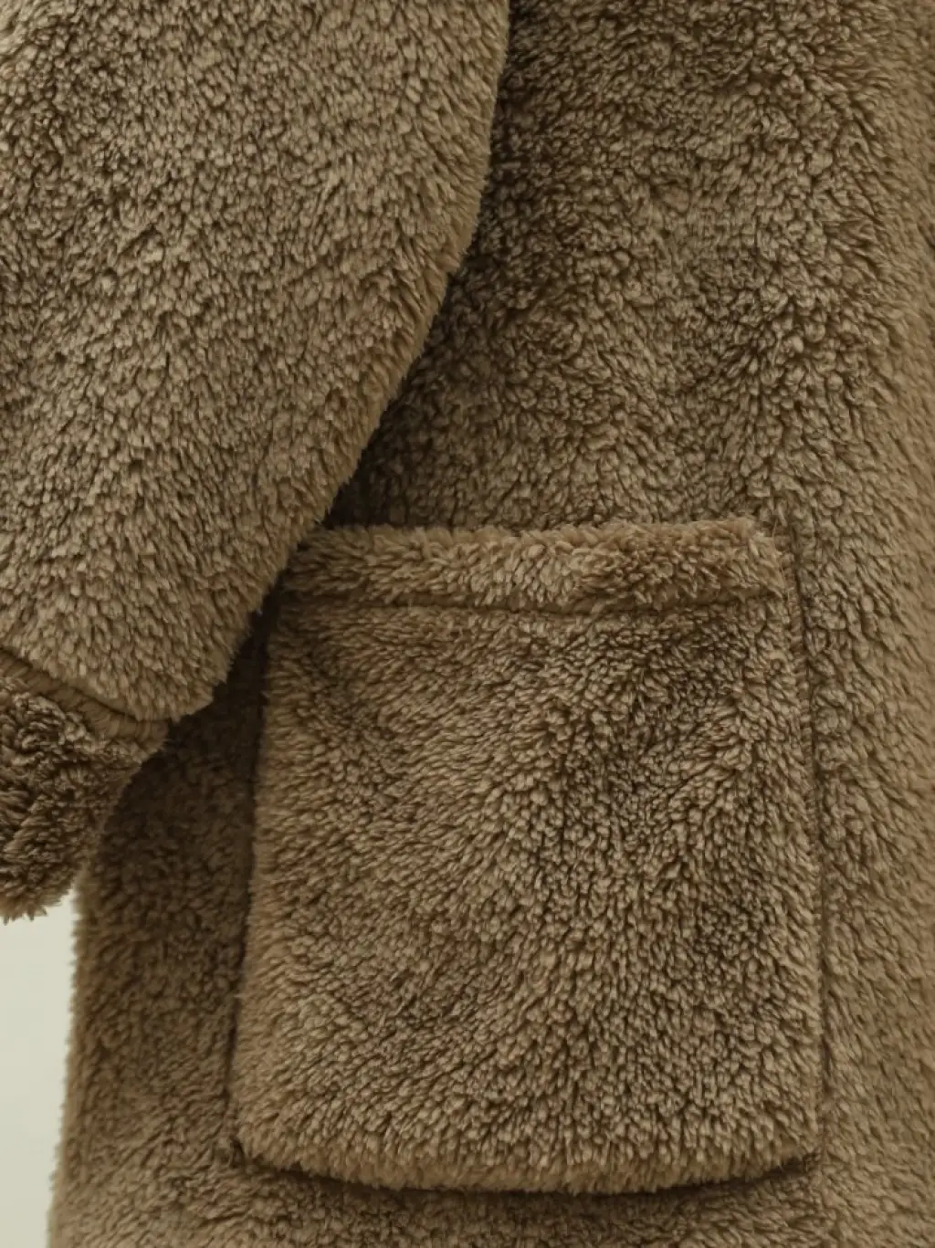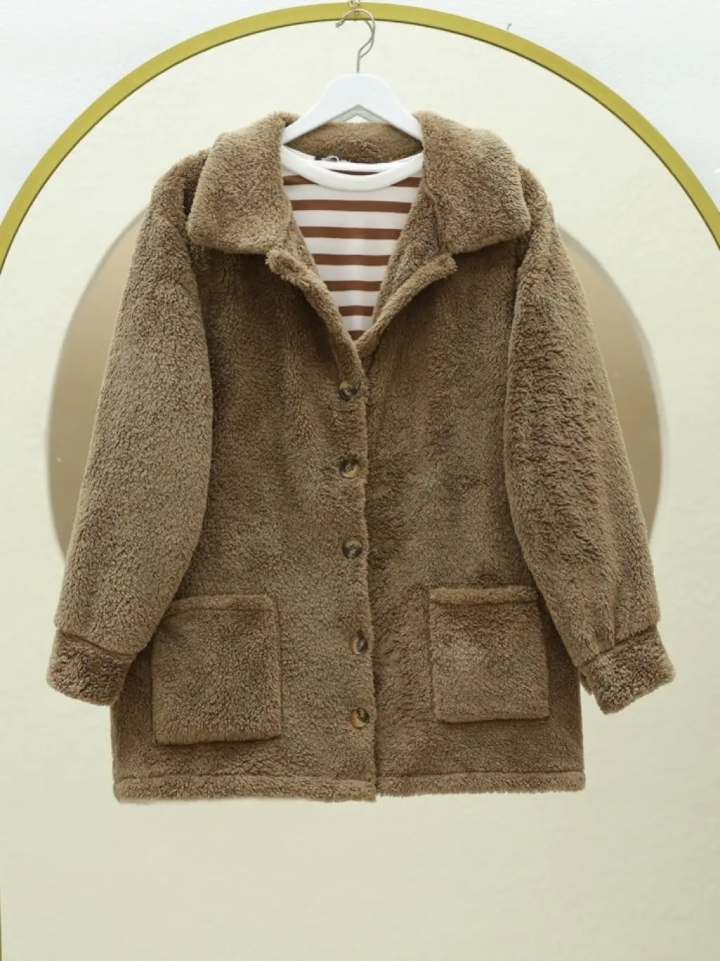 Boydan Düğmeli Cepli Pelüş Ceket -Kahve