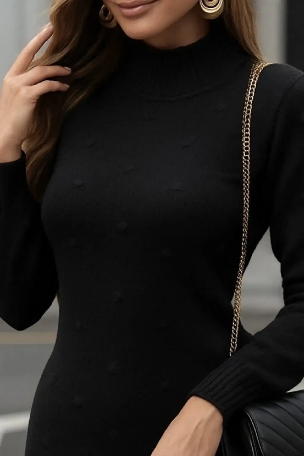 Kadın Uzun Kollu Balıkçı Yaka Triko Mini Boy Elbise