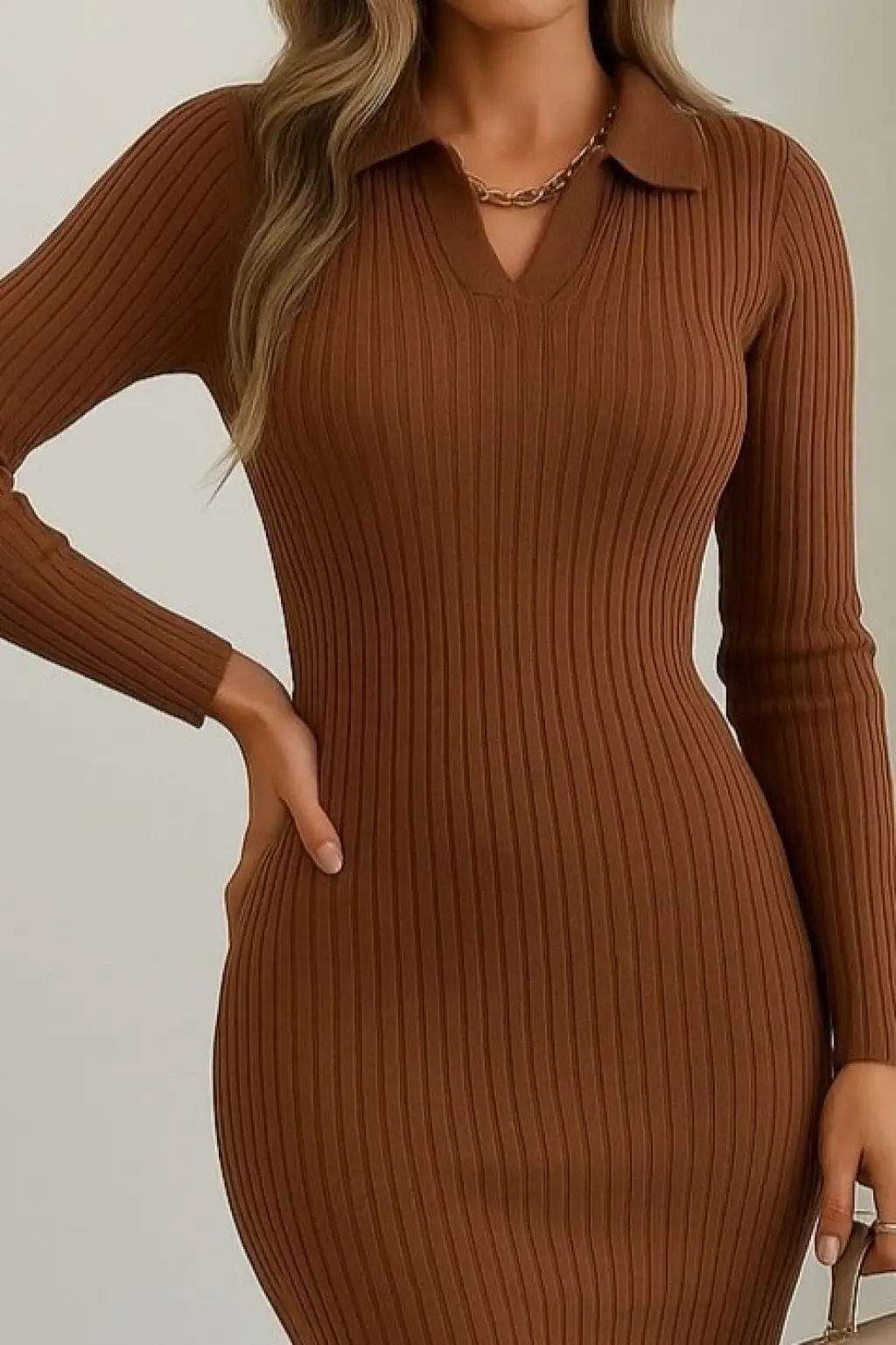 Kadın Uzun Kollu Yakalı Triko Elbise