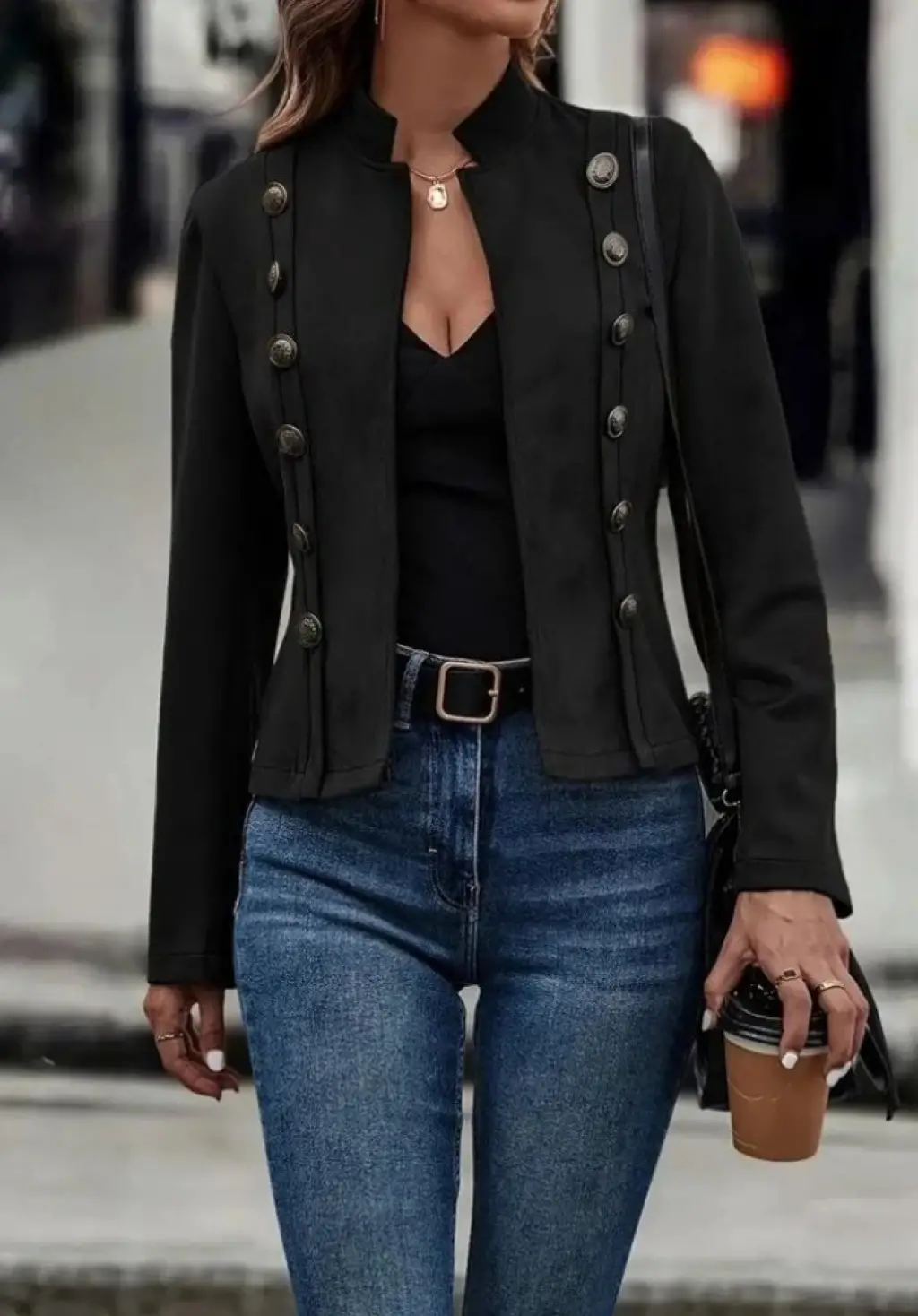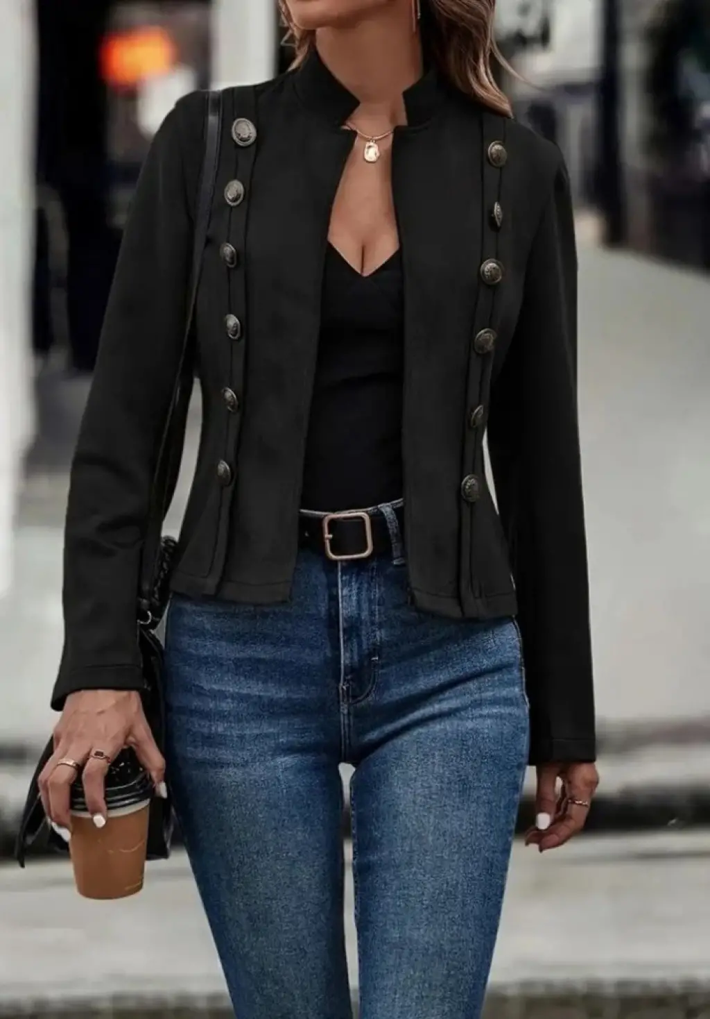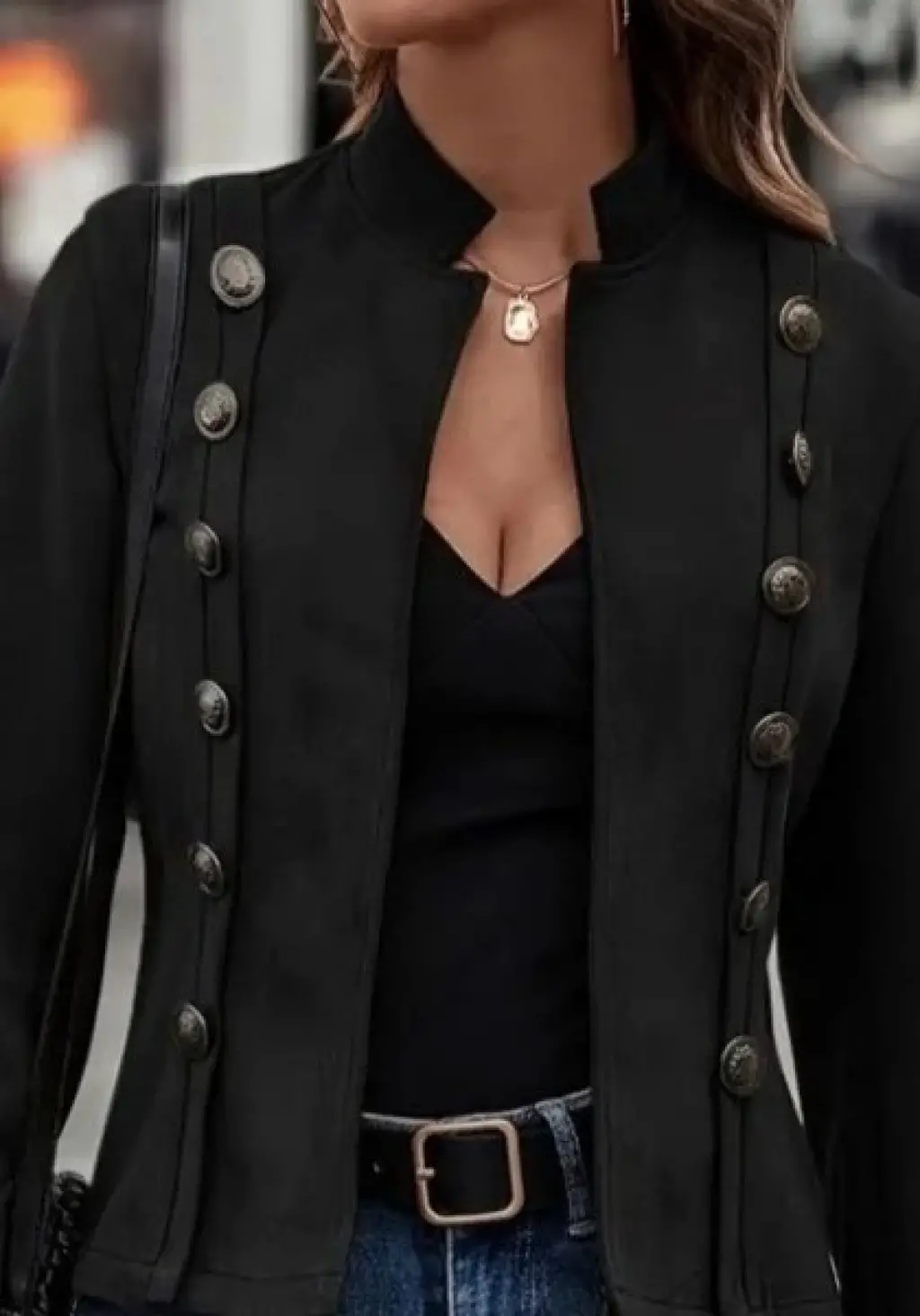 Kadın Uzun Kollu Hakim Yaka Yanlardan Düğmeli Kısa Süet Ceket