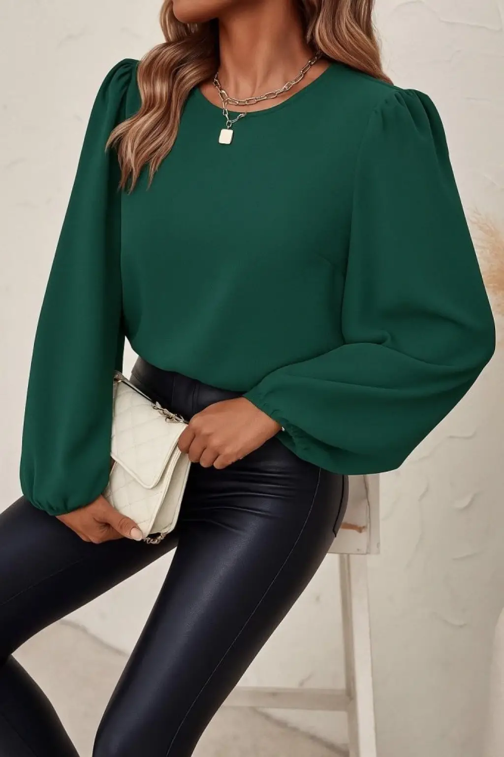 Kadın Uzun Kollu Yuvarlak Yaka Arkadan Bağcıklı Salaş Ithal Krep Bluz