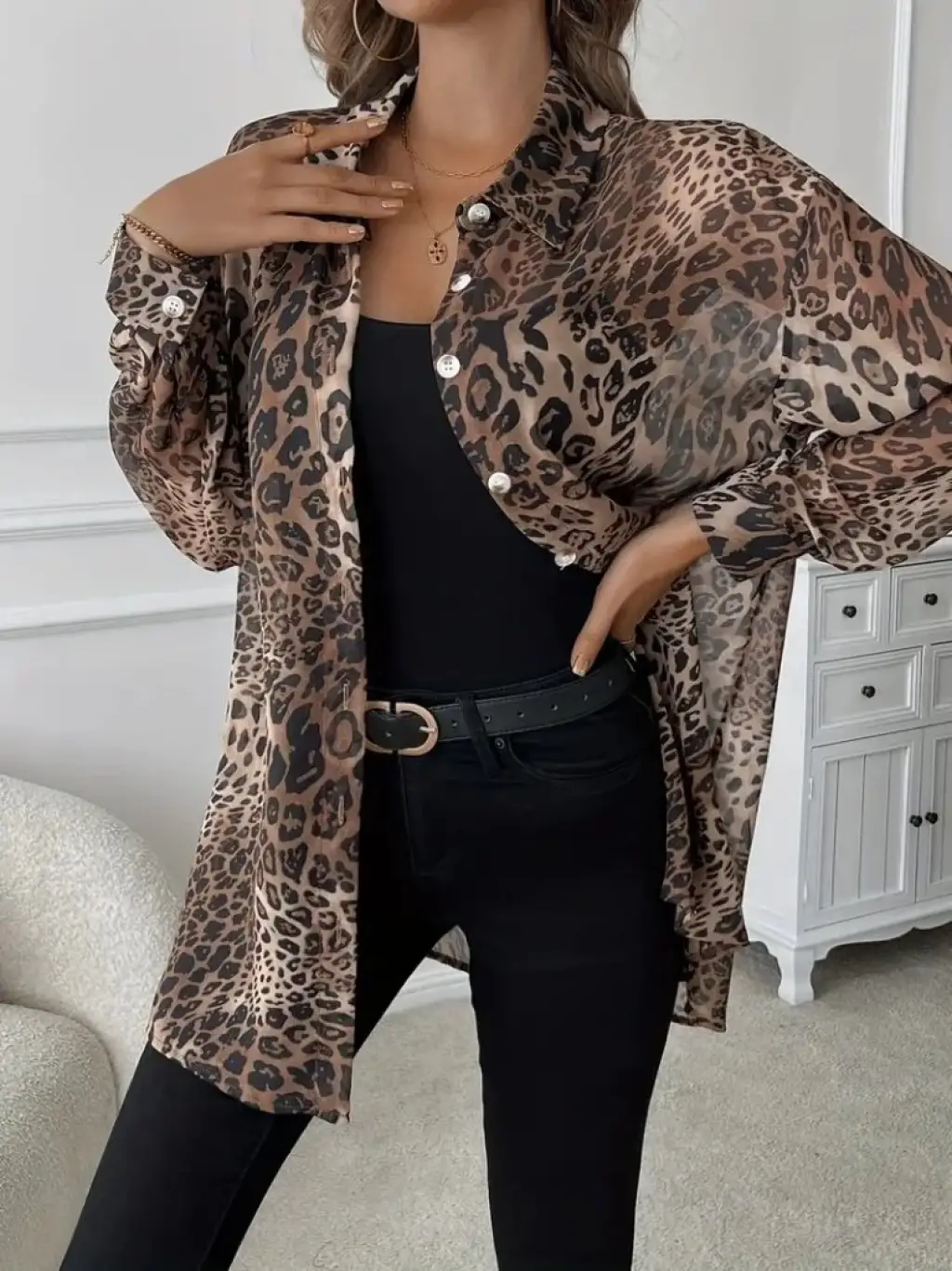 Kadın Uzun Kollu Yakalı önden Düğmeli şifon Gömlek
