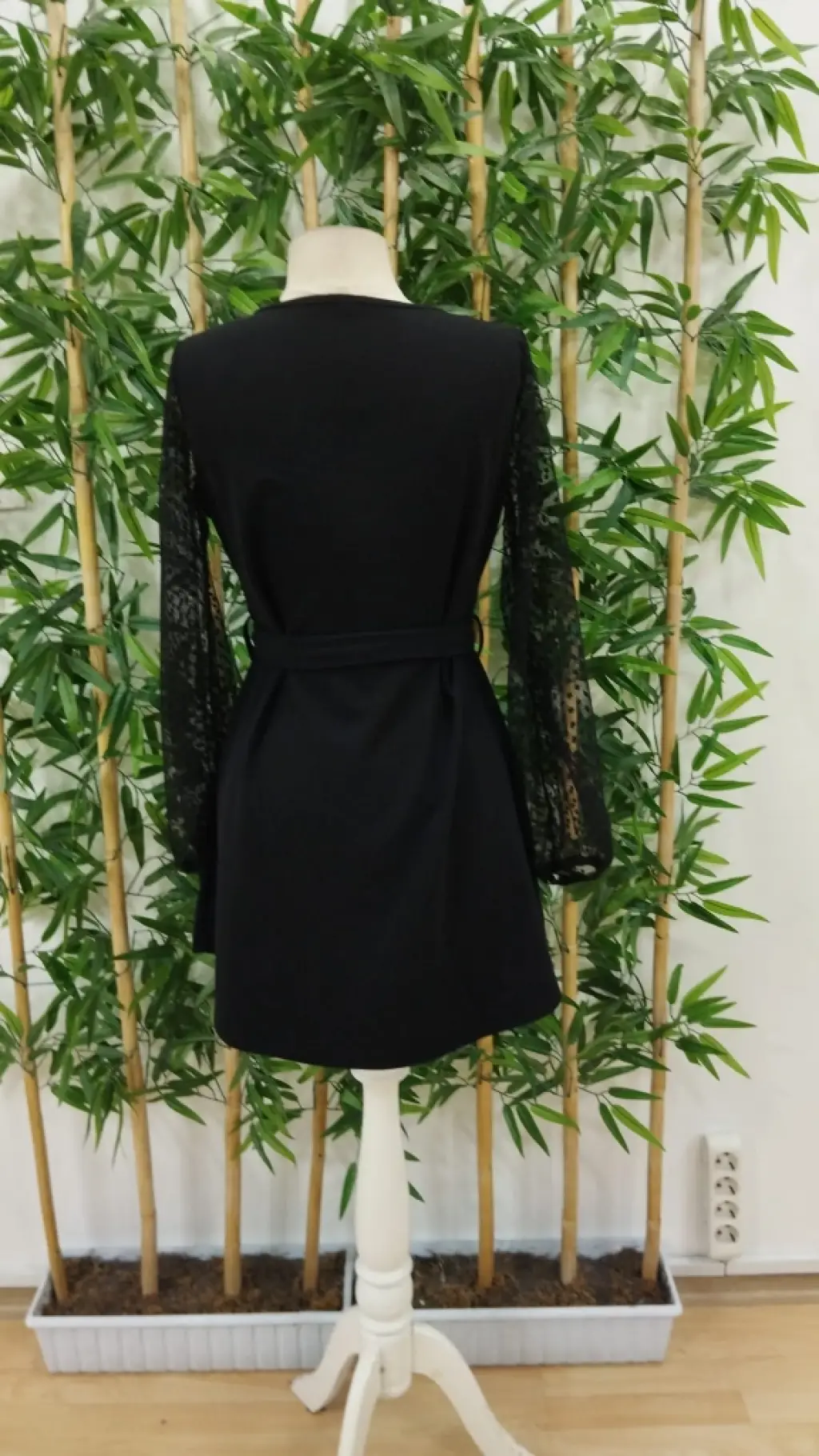 Kadın Uzun Kollu Yakadan Bağcıklı Belden Kuşaklı Ithal Krep Elbise