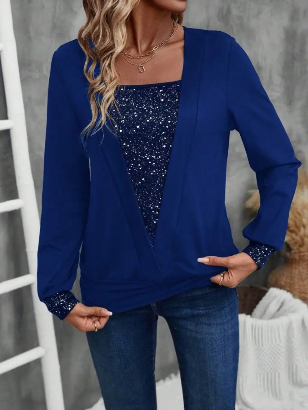 Kadın Uzun Kollu V Yakalı Içi Süprem Desenli Dışı Viskon Bluz