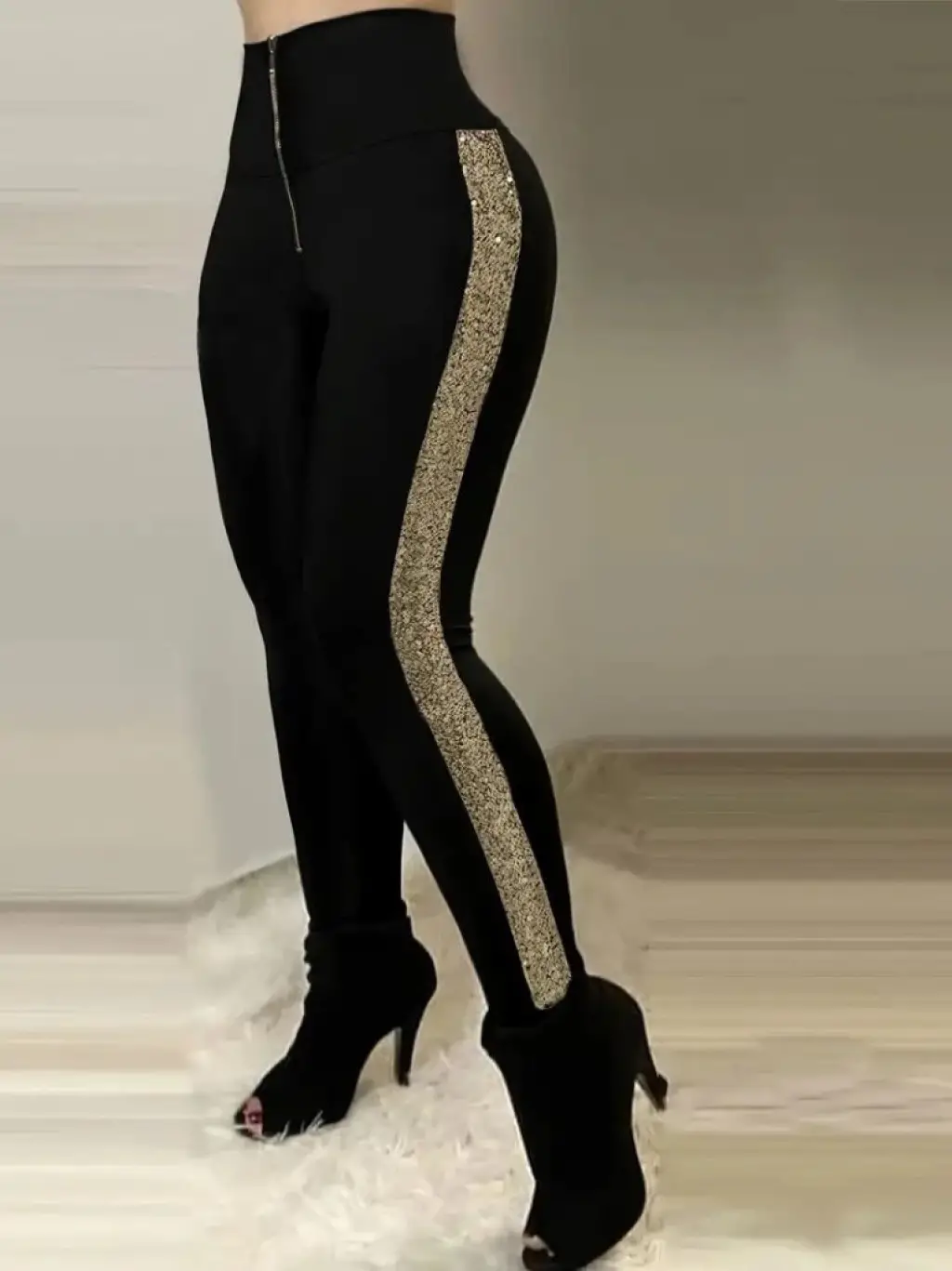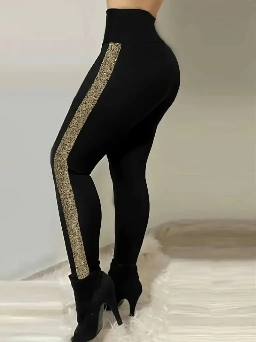 Kadın Yüksek Bel Yarı şerit Pul Payetli Dalgıç Tayt