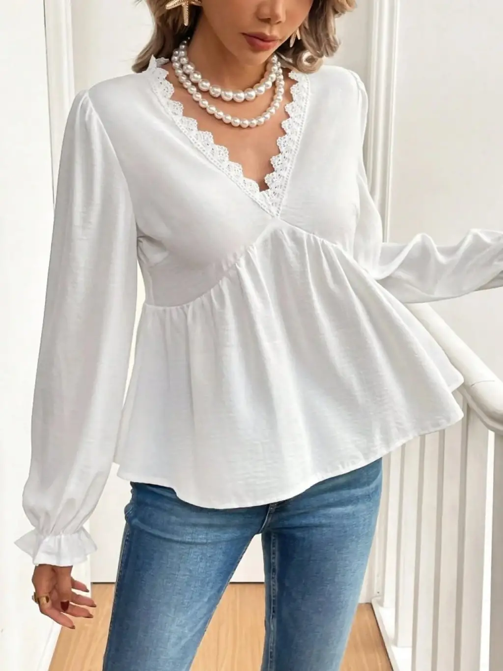 Kadın Uzun Kollu Hakim Yaka Tül Detay Ithal Krep Bluz