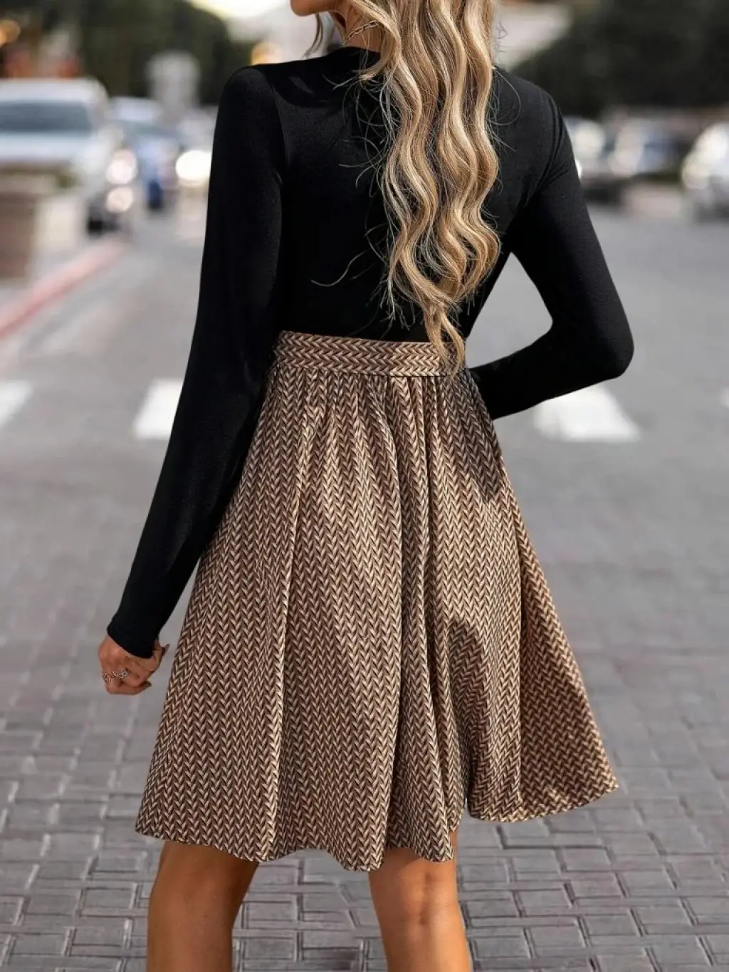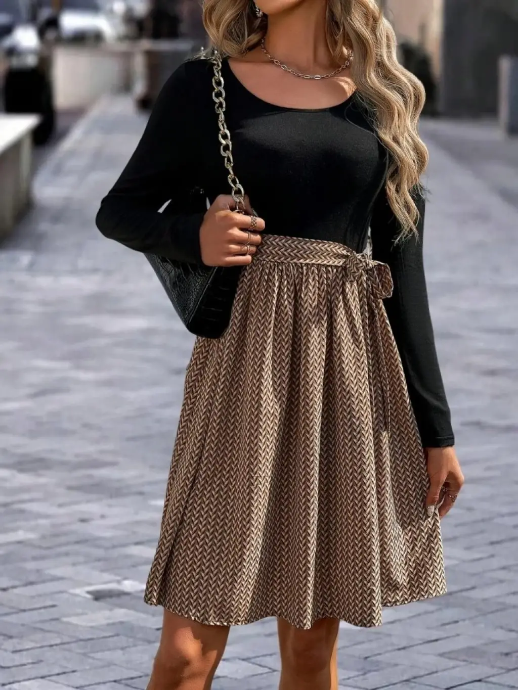 Kadın Uzun Kollu Balıkçı Yaka Belden Bağlamalı üst Kaşkorse Eteği Dalgıç Elbise