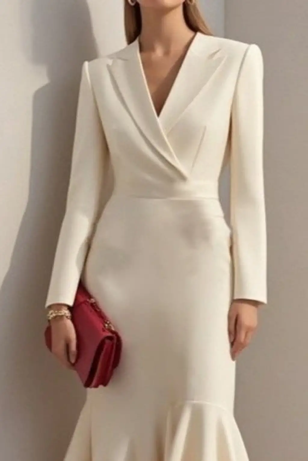 Kadın Uzun Kollu Yakalı Belden Oturtmalı Midi Ithal Krep Elbise