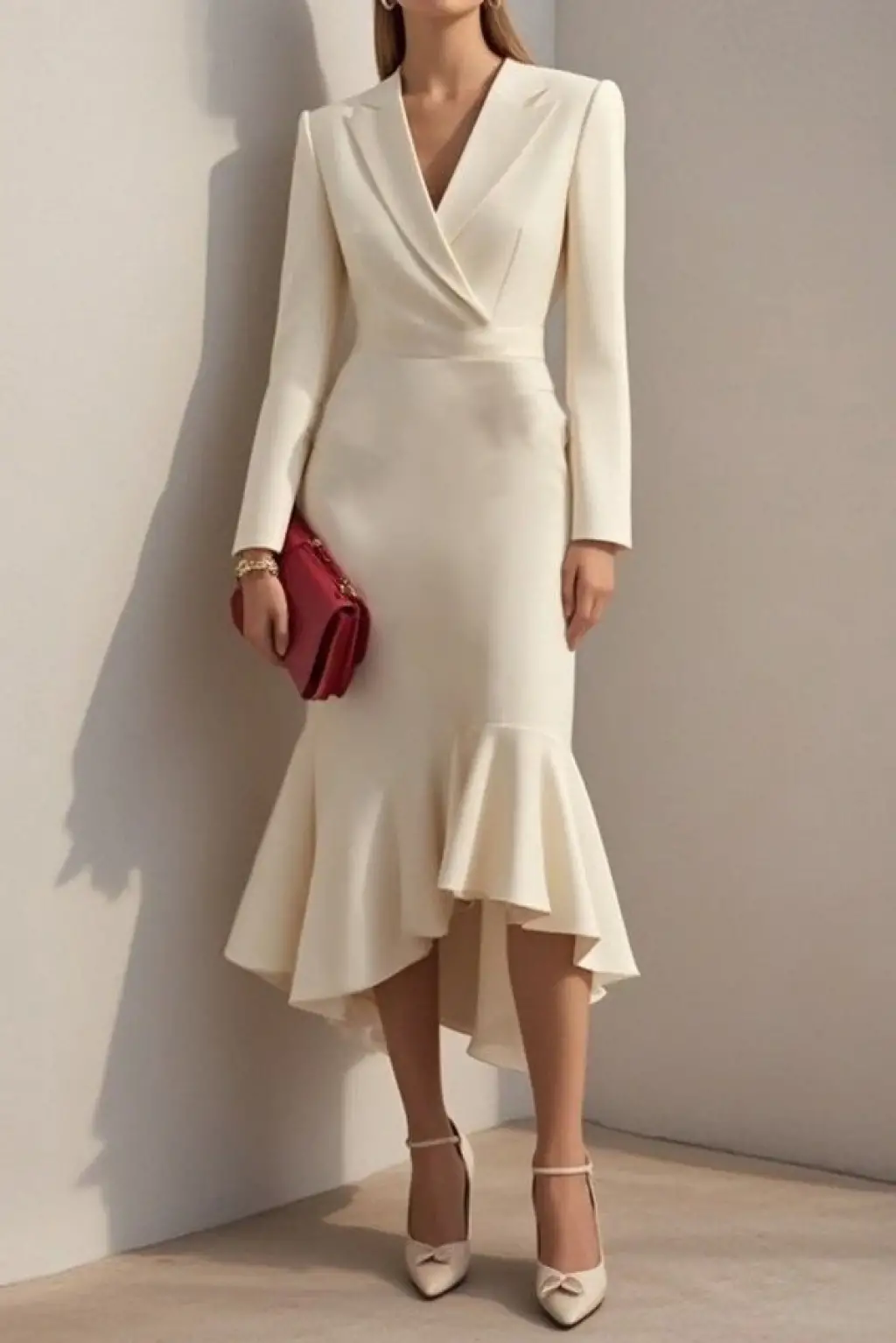 Kadın Uzun Kollu Kruvaze Yaka Yandan Büzgülü Asimetrik Detaylı Ithal Krep Mini Elbise
