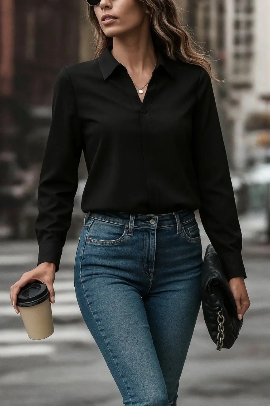 Kadın Uzun Kollu Yakalı Trikoton Gömlek