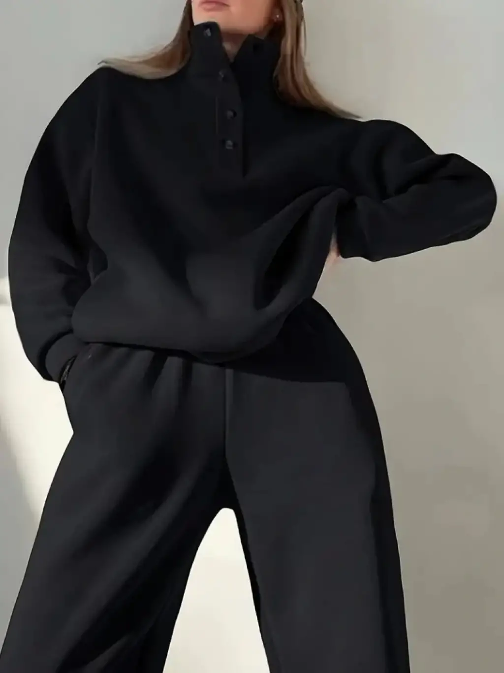 Kadın Uzun Kollu Balıkçı Dik Yakalı Düğmeli üç Iplik Bluz Ve Pantolon Ikili Takım