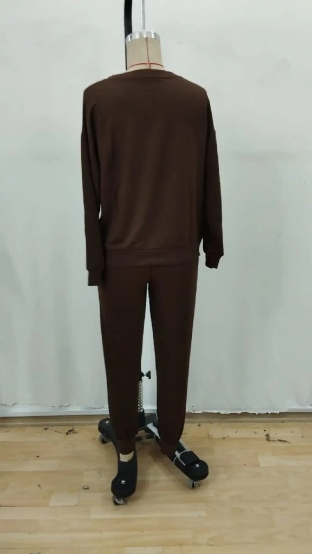 Kadın Uzun Kollu Yuvarlak Yakalı Kaz Ayağı Detaylı Viskon Iki Iplik Bluz Ve Pantolon Ikili Takım