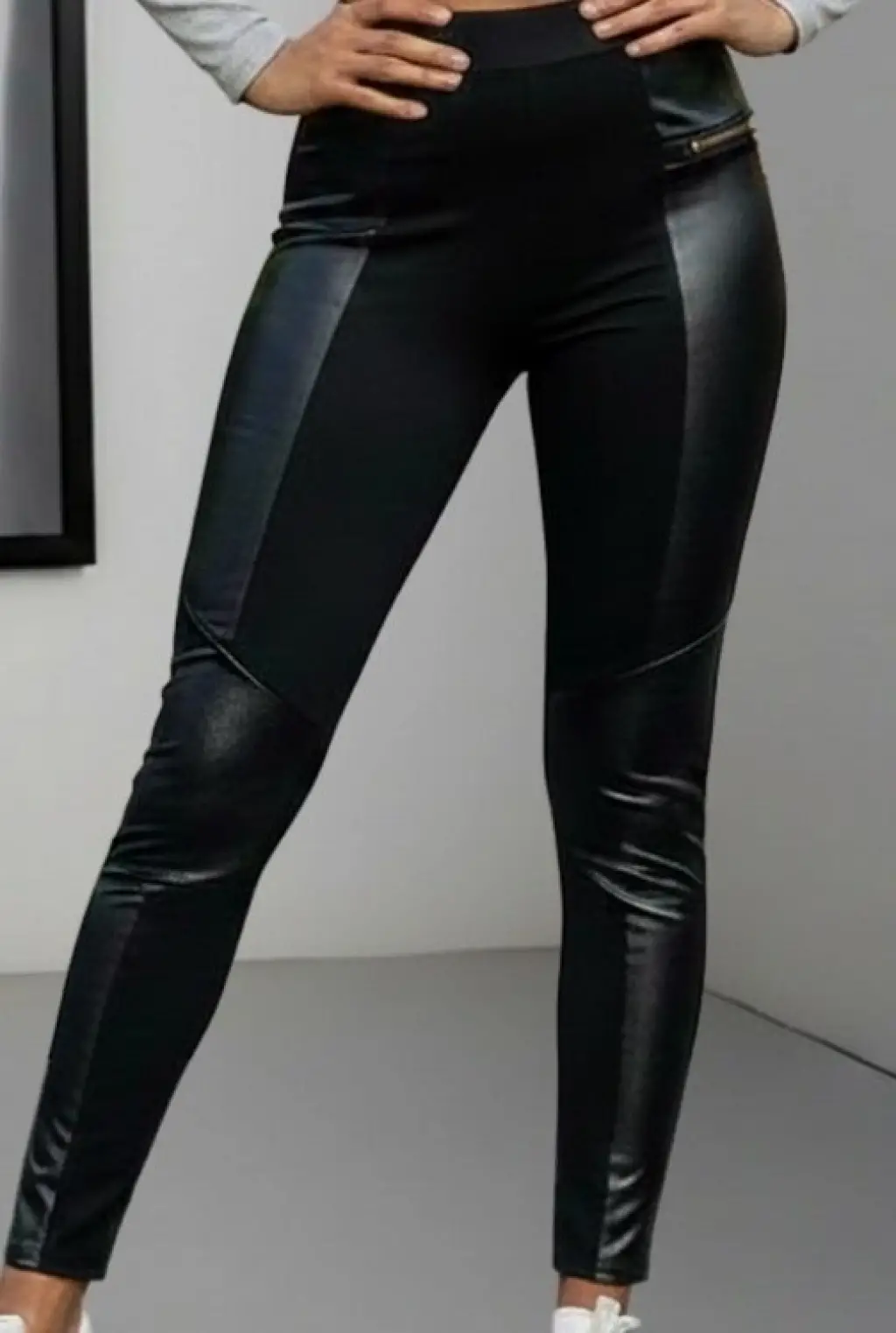 Kadın Yüksek Bel Yan şerit Deri Detay Fermuarlı Dalgıç Tayt