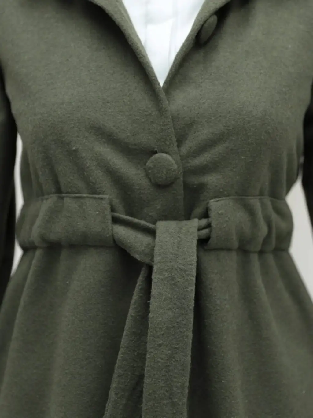 Belden Bağlamalı Top Düğmeli Kaşe Kaban -Haki