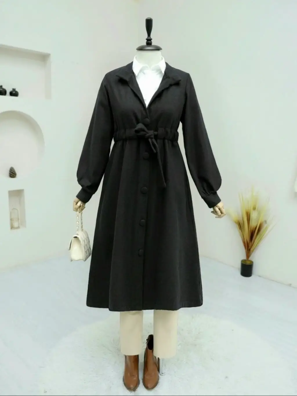 Cepli kuşaklı kaşe kaban antrasit st26458