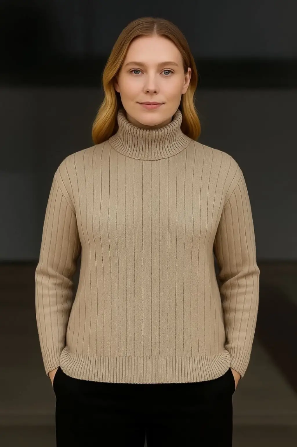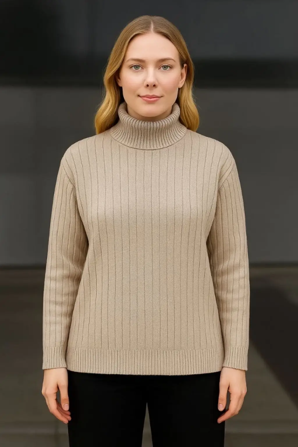Balıkçı yaka dar kesim kaşkorse kazak bej w3103