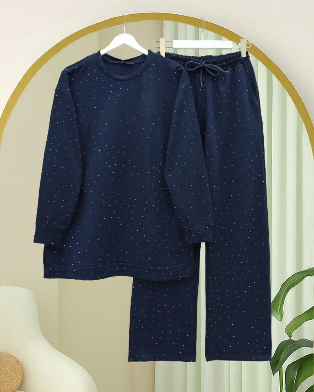 Kadın Uzun Kollu Nope Baskılı Beli Ribanalı Ikili Takım