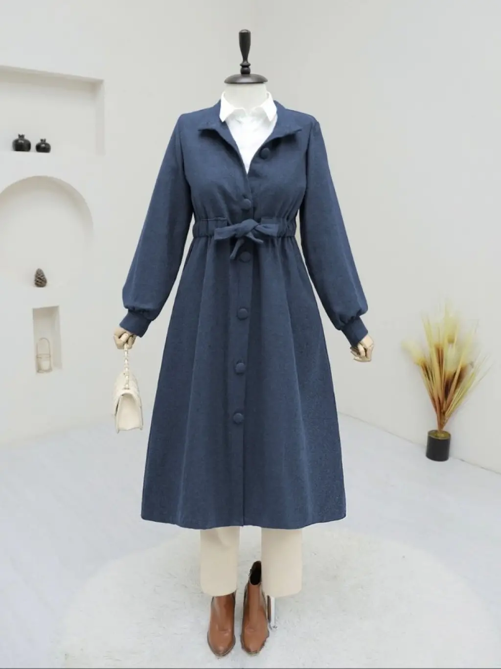 Belden Bağlamalı Top Düğmeli Kaşe Kaban -Laci