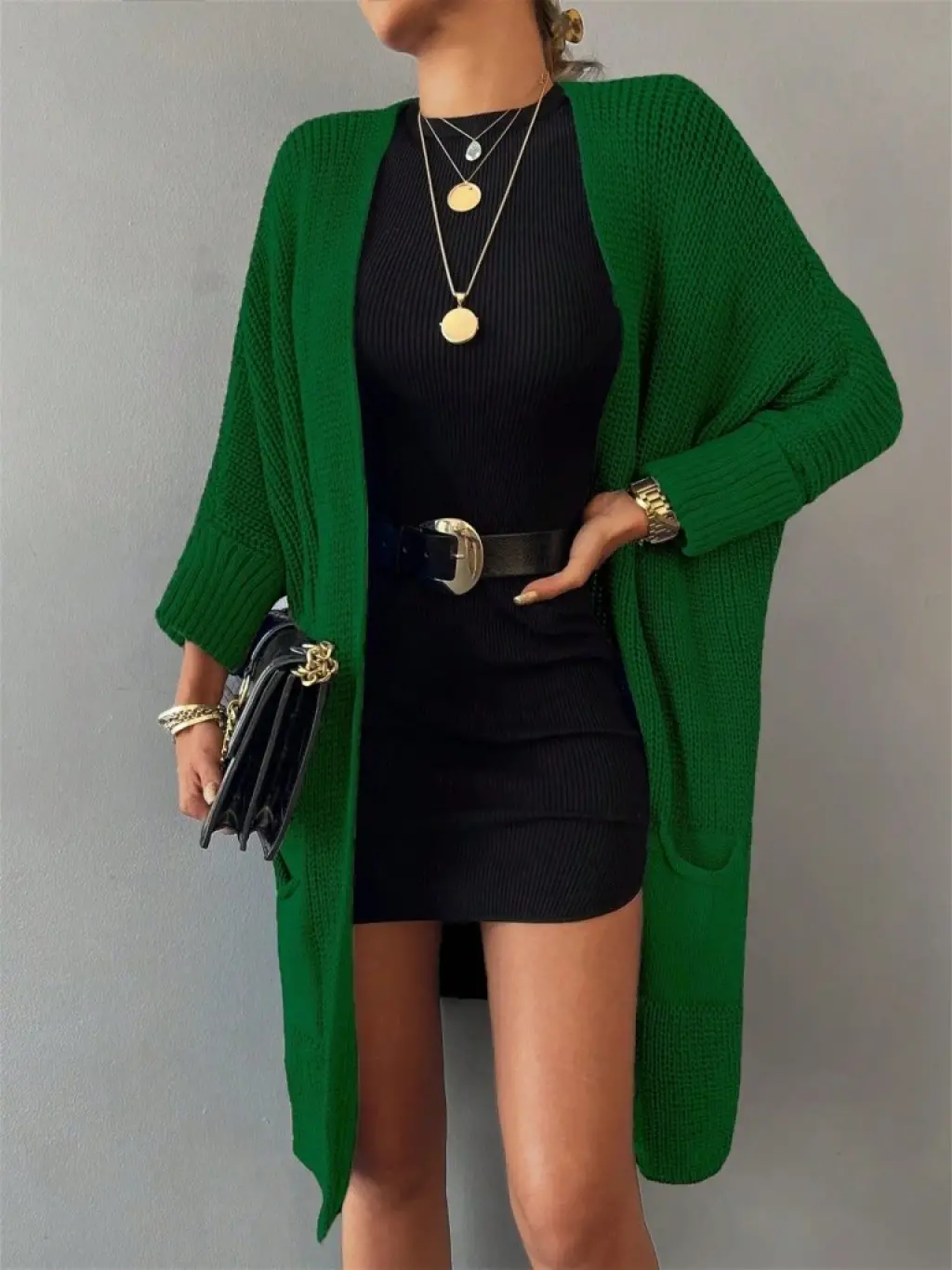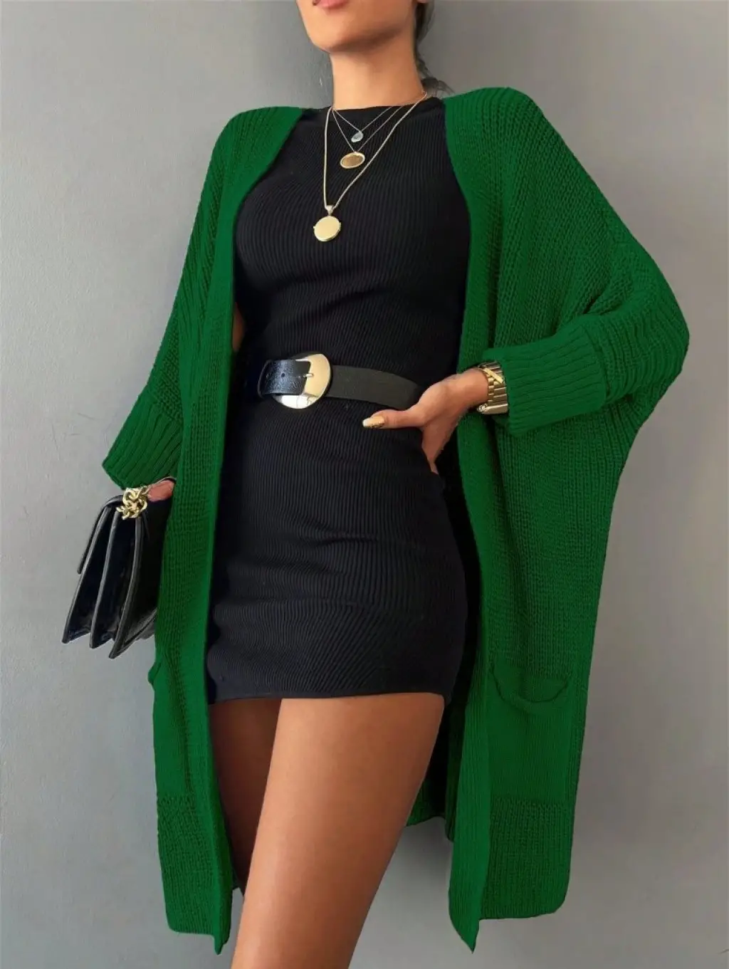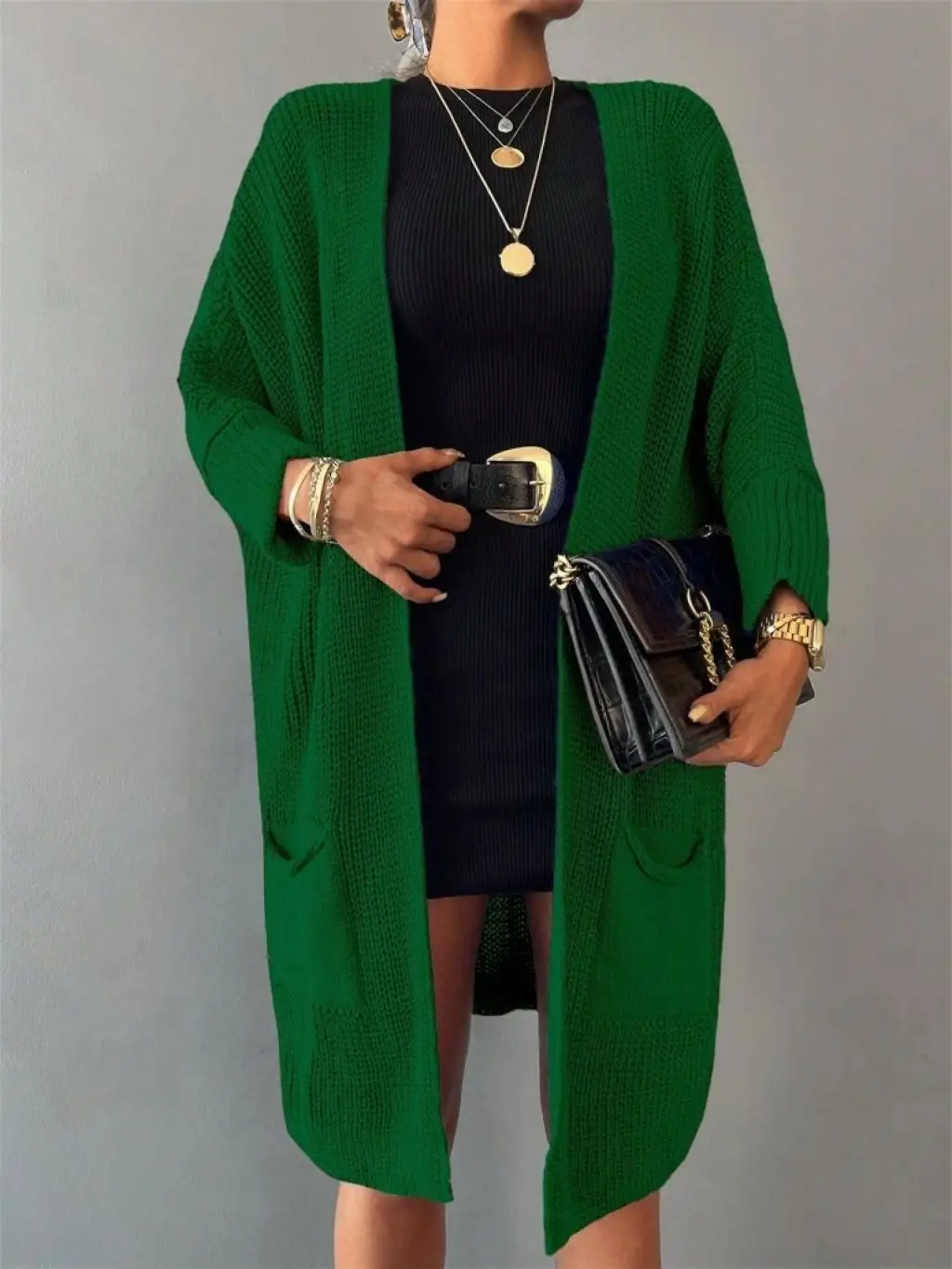 Oversize Kalıp Cepli Salaş Triko Hırka