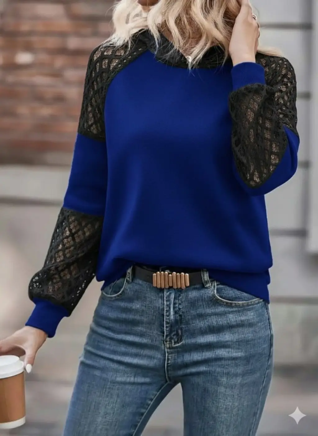 Kadın Uzun Kollu Dantelli Kapşonlu Viskon Iki Iplik Bluz