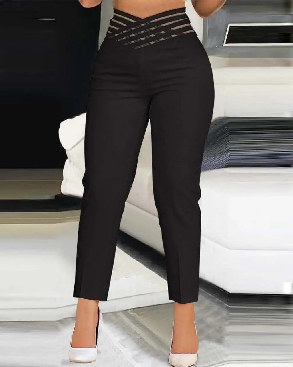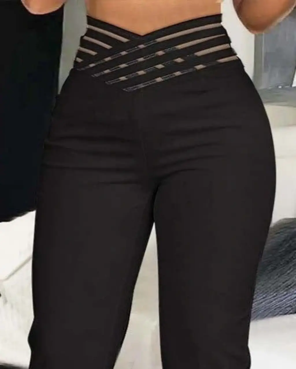 Kadın Yüksek Bel çapraz şerit Detaylı Ithal Krep Pantolon