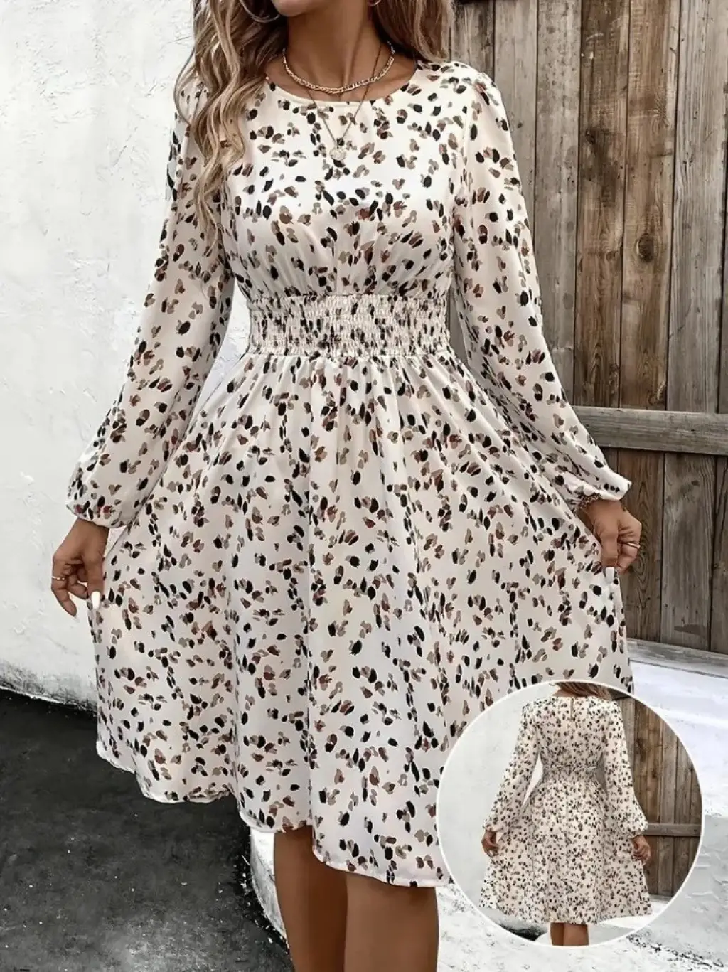 Kadın Uzun Kollu Bot Yaka Beli Lastikli Midi Süprem Elbise
