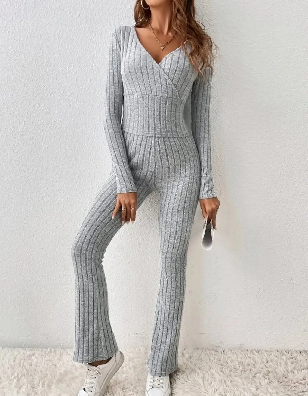 Kadın Uzun Kollu Ribana Detay Viskon Iki Iplik Ikili Takım