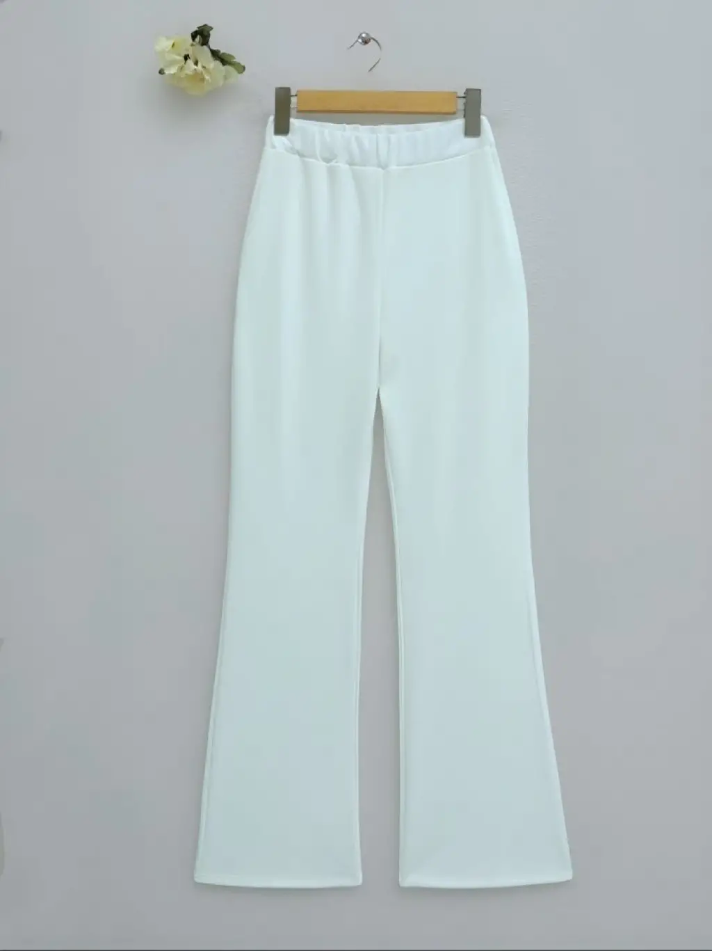 İthal Kumaş İspanyol Paça Pantolon -Beyaz