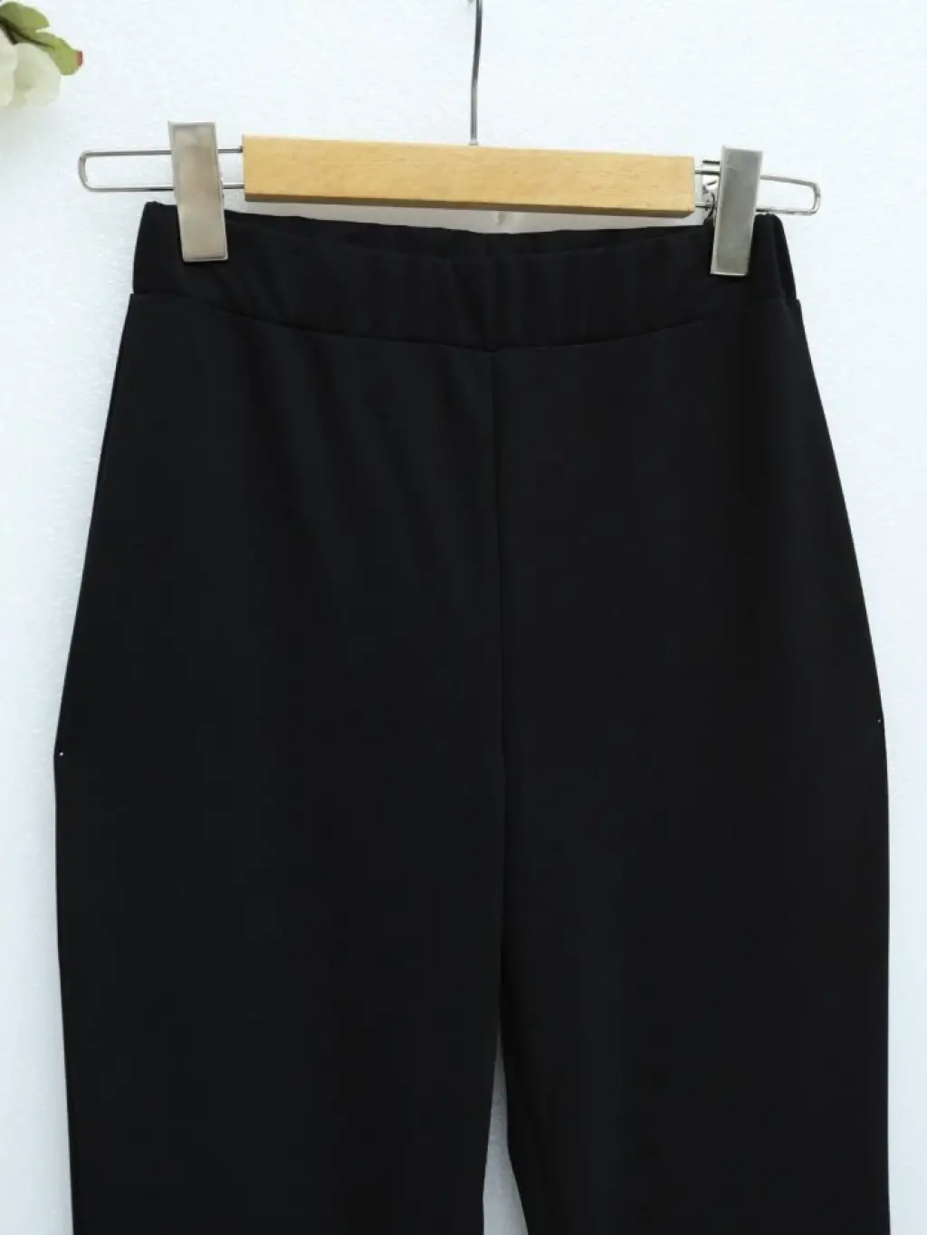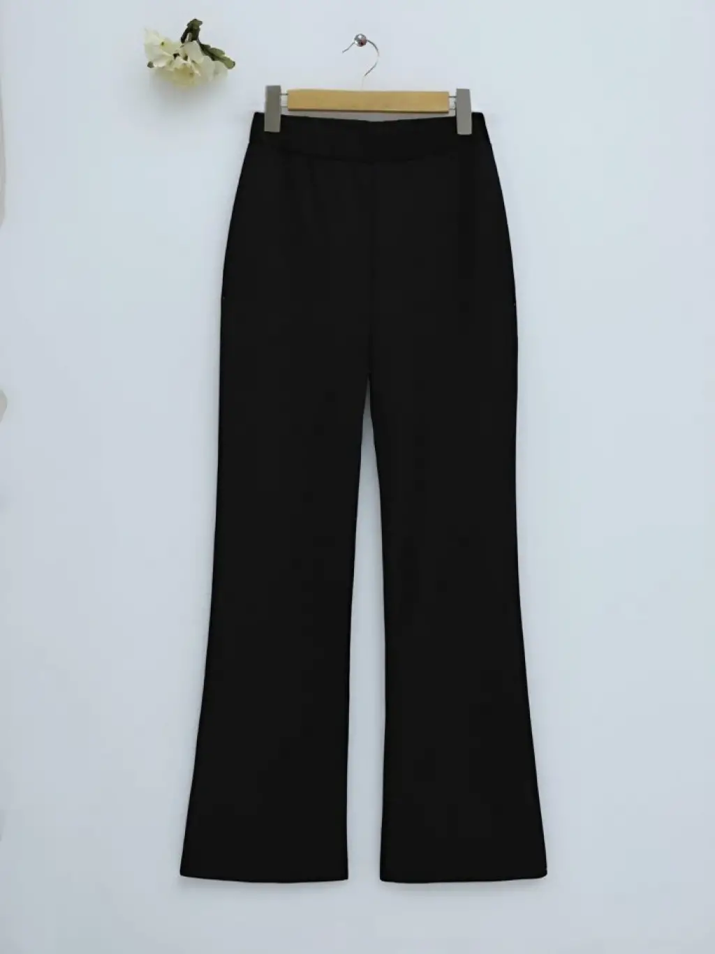 İthal Kumaş İspanyol Paça Pantolon -Siyah
