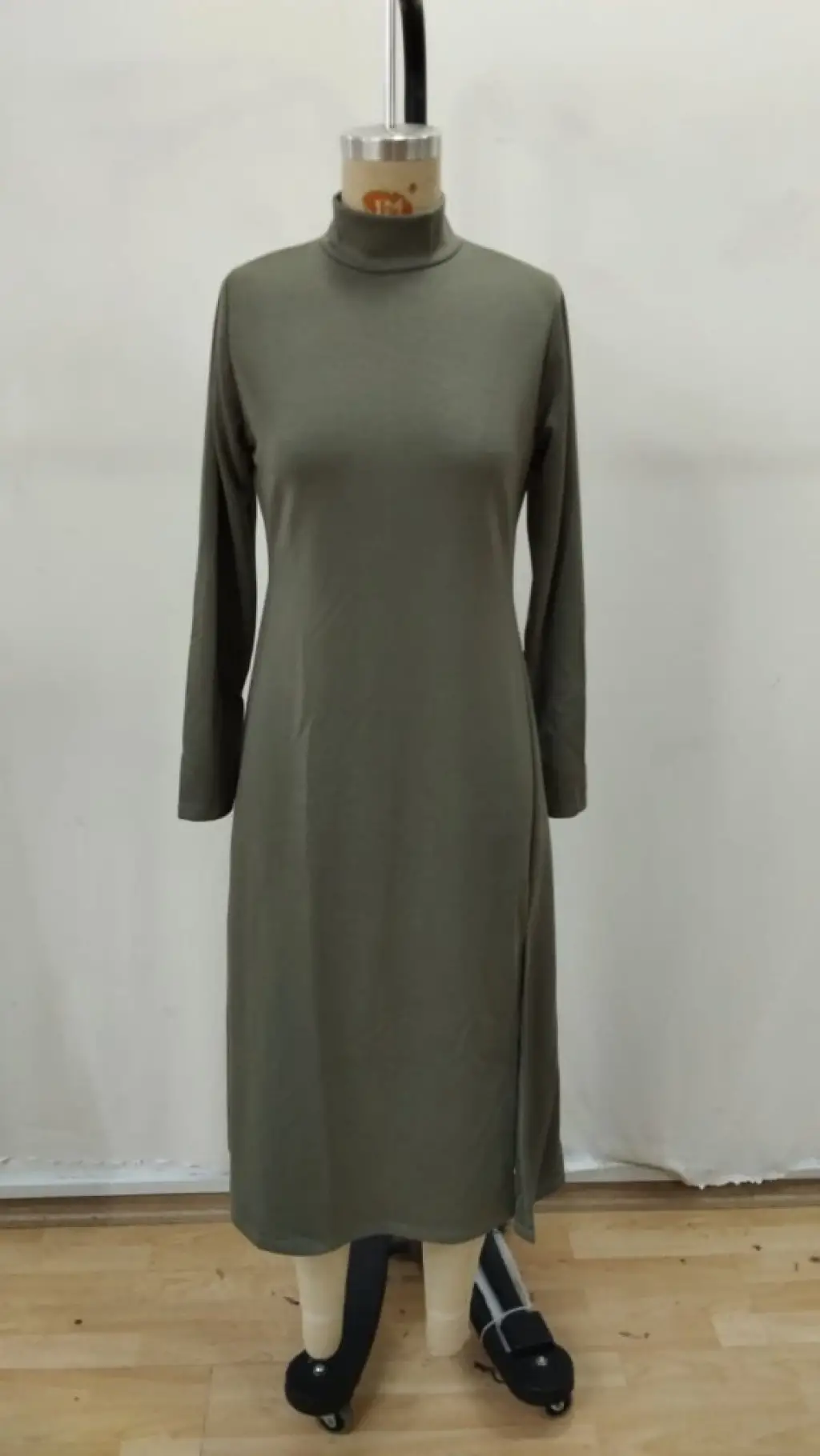 Kadın Uzun Kollu Balıkçı Yaka Derin Yırtmaç Detay Krep Elbise