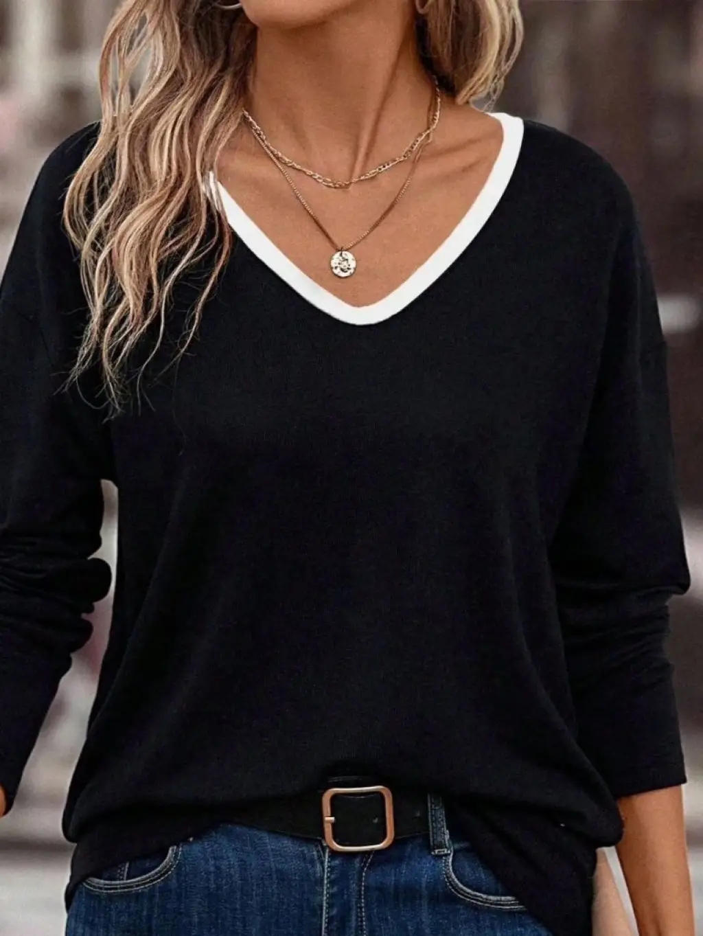 Kadın Uzun Kollu V Yakalı Triko Bluz