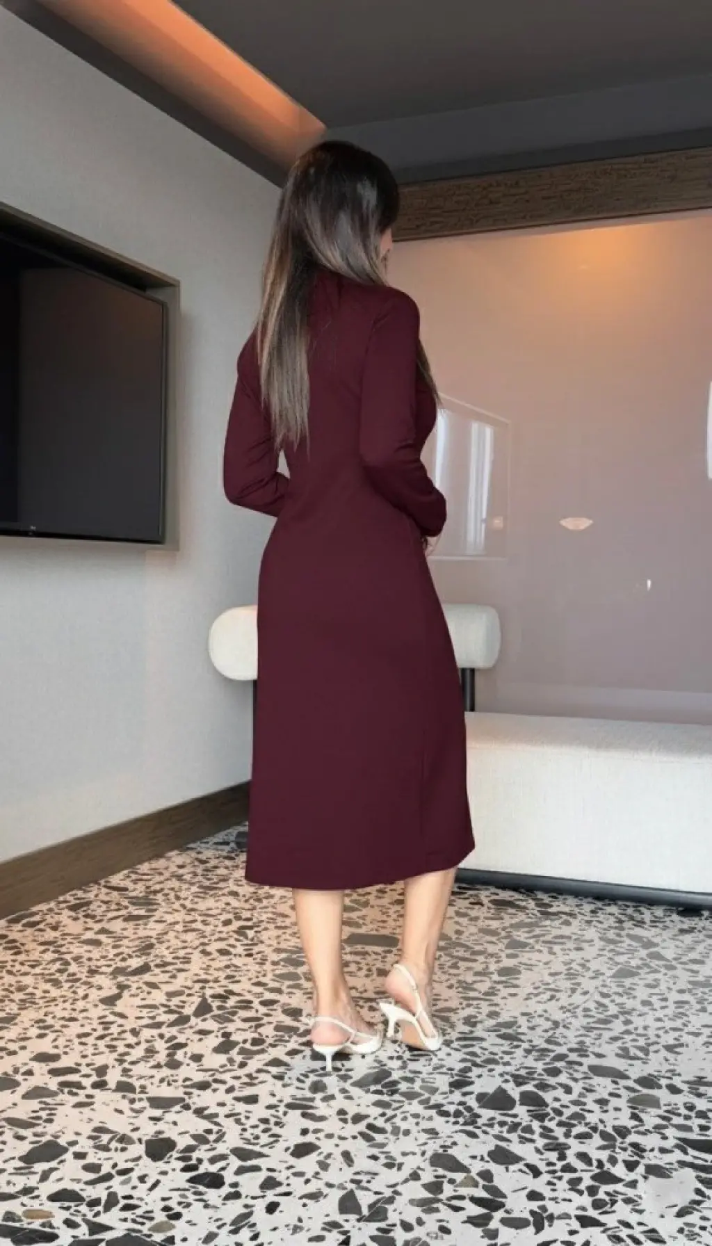 Kadın Uzun Kollu Balıkçı Yaka Dalgıç Midi Boy Elbise