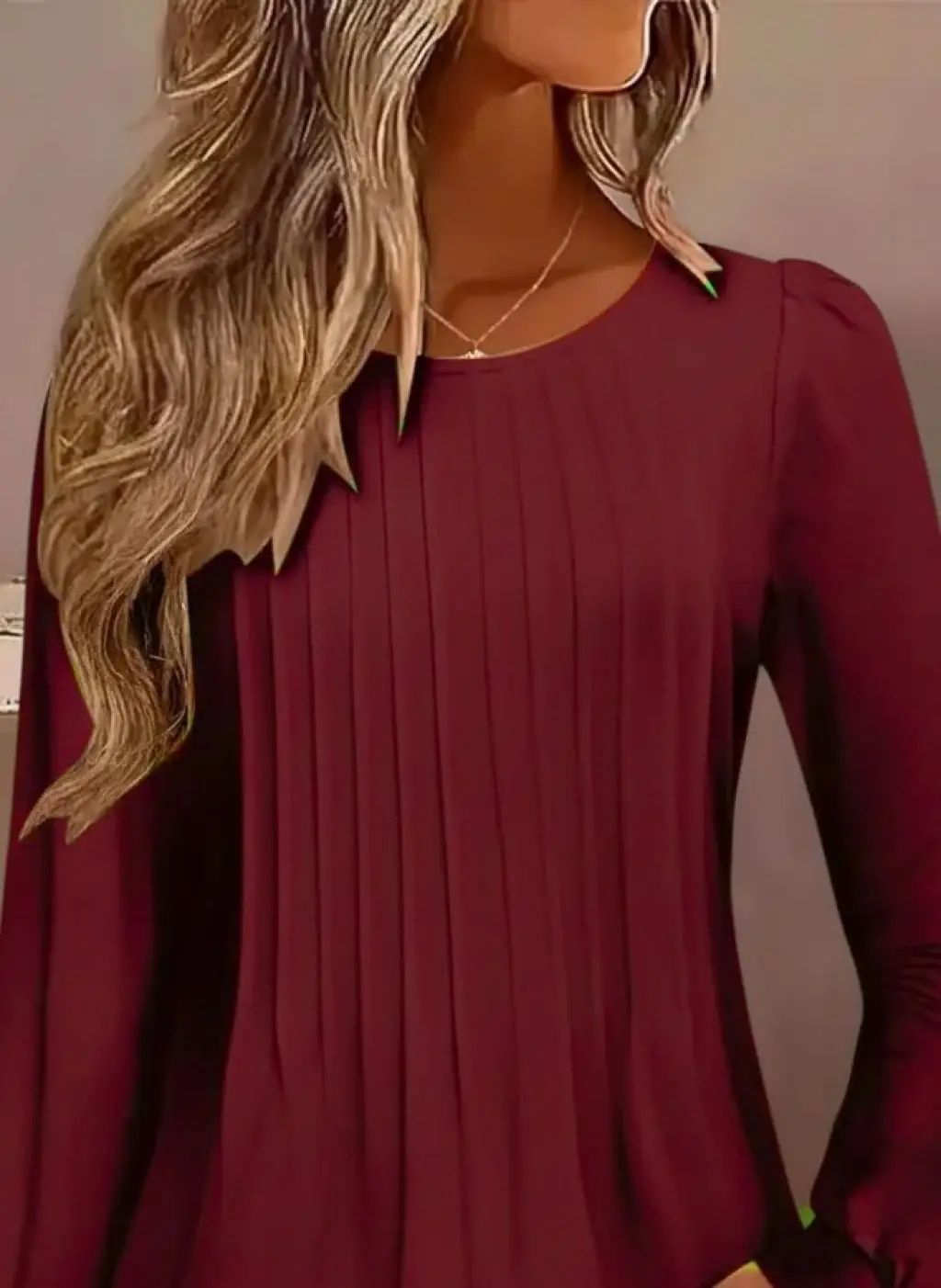 Kadın Uzun Kollu Yuvarlak Yaka Nervürlü Bluz