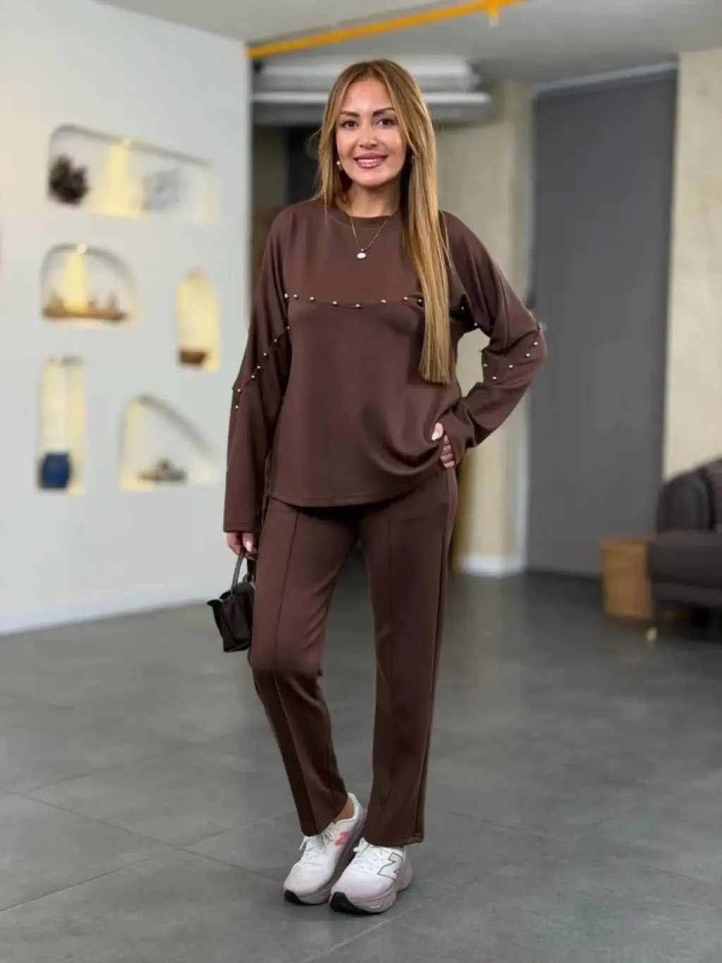 Kadın Inci Detay Modal Kumaş Ikili Takım